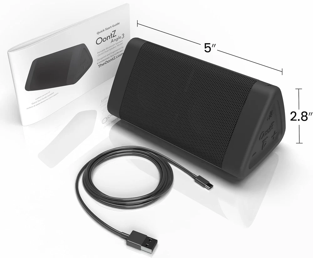 Store New Arrivals Add to Favorite View Feedback Contact Oontz Angle 3 Portable Bluetooth 5.4 Speaker | 12W Sound, 24-Hr Battery, 100Ft Wireless Range, IPX5 Water-Resistant, Budget-Friendly for Travel, Outdoor & Home (Black) Description Item model number OontZ Angle 3 Black Grille Number of Items 1 Power Source Battery Powered Maximum Range 100 Feet Control Method Voice Warranty Type Limited Battery Life 24 Hours Bluetooth Range 100 Feet Controller Type Button Unit Count 1.0 Count Speaker Size 5 Inches Wireless Communication Technology Bluetooth Material Plastic Includes MP3 player? No Model Name OontZ Angle 3 Black Number of Batteries 1 Lithium Ion batteries required. Recommended Uses For Product For Smartphones or Tablets Is Discontinued By Manufacturer No Specific Uses For Product Party, Gaming Included Components Speaker Customer Package Type Standard Packaging Battery Capacity 2200 Speaker Maximum Output Power 12 Watts Water Resistance Level Water Resistant Connectivity Protocol Bluetooth Item Weight 9.4 ounces Connectivity Technology Wireless Charging Time 14 Hours Special Feature Hi Res Audio, Waterproof Mounting Type Freestanding Color Black Surround Sound Channel Configuration 3.0 Compatible Devices Tablet, Smartphone Speaker Type Outdoor Global Trade Identification Number 00685450128650 Is Waterproof True Batteries 1 Lithium Ion batteries required. Audio Output Mode Stereo Product Dimensions 2.8"D x 5.3"W x 2.6"H PORTABLE SPEAKER - At just 5.3 inches long and weighing only 10 ounces, this mini Bluetooth speaker is made to travel, with an extended battery life that lets you play all day on a single charge, so you can bring the party wherever you go. IPX5 WATER-RESISTANT DESIGN - Enjoy music in the shower, on beach days, or at pool parties with this water-resistant Bluetooth speaker. The splash-proof design makes it perfect to use as an indoor or outdoor speaker. ZERO DISTORTION - This small speaker can get surprisingly loud, with a powerful 12 watts of output voltage. It provides high-quality sound even at maximum volume, so you can enjoy all the jams with none of the distortion with this perfect party speaker. BLUETOOTH 5.4 WITH 100FT RANGE - Enjoy uninterrupted music within 100ft thanks to the incredible Bluetooth 5.4 technology. This small Bluetooth speaker is designed and engineered by Cambridge Sound Works in the USA, using the highest quality components. PRODUCT DETAILS - Dimensions: (L) 5.3” x (W) 2.8” x (H) 2.6”. Output Voltage: 12 Watts. Blue Tooth Speaker Range: 100ft. Color: Black. Product Description Angle 3 Bluetooth Speakers Bring the party anywhere. OontZ premium Bluetooth speakers deliver full and exceptionally loud, distortion-free sound even at maximum volume in such a compact design. Waterproof, portable, and lightweight - perfect for travel and outdoor fun! MUSIC ON THE GO. Surprisingly Loud Volume Plays loud and distortion-free even at maximum volume. With 12 watts of peak power output, this can fill an average-sized room with high-quality sound. Ideal for dorm rooms, the beach and pool, small groups, and gatherings. Ultra Portable and Lightweight Take it from room to room and everywhere you go. This portable speaker is 5.25 inches long, 2.6 inches high, and 2.8 inches wide and weighs only 10 oz, so you can carry your music with you on your travels. Perfect to give you the beat on a hike or for a relaxing jam on your camping with friends. HIGH-QUALITY SOUND INDOORS AND OUTDOORS 100-Feet Bluetooth Range Play up to 100-ft away from your device. With Bluetooth 5.0, you can have greater wireless range and faster connection to play music wherever you go. IPX5 Water Resistant Rating Listen to music in the shower or by the pool. With IPX5 Water Resistant Rating, this speaker is your perfect travel speaker—rain or shine! 24-Hour Playtime With bigger 2500mAh rechargeable battery, this speaker can boast up to 24 hours at 2/3 volume. It’s great power that comes in its compact size! Wireless Speaker Phone Get your personal speaker phone! Comes with built-in mic so you can talk hands-free while you’re doing other tasks and you move from room to room. ADD COLORS TO YOUR MUSIC! CHOOSE THE COLOR THAT SUITS YOU. OontZ Angle 3 Bluetooth Speaker, Black You can never go wrong with black. It's sleek and shows power, just like our OontZ Angle 3 Speakers that boast power even in a small size. Play your music loud and proud! OontZ Angle 3 Bluetooth Speaker, Pink Stand out in the crowd! It’s pink power with this playful speaker, always ready to amp your party up on the beat with its distortion-free sound even at maximum volume. OontZ Angle 3 Bluetooth Speaker, Red Carry your passion for music wherever you go! Bring it with you to your camping, hiking, or any adventure that requires you to pump it up. Unleash exceptionally loud sound to your outdoor fun! OontZ Angle 3 Bluetooth Speaker, White Enjoy crisp and crystal-clear sounds like no other. Designed uniquely with its triangular shape in neat white color. Portable and lightweight, so you can play your party playlist wherever! OontZ Angle 3 Bluetooth Speaker, Golf Edition Music on the green. Add more power to your every swing for that hole-in-one! This Golf Edition Bluetooth Speaker is the perfect sound buddy to take with you on the course. OontZ Angle 3 Bluetooth Speaker, Coke Edition Big sound in a refreshing package. This Coke-designed speaker delivers powerful, distortion-free audio in a compact, water-resistant, and travel-ready form. Perfect for outdoor fun! OontZ Angle 3 Speaker Comparison Chart Up to 24 Hours Battery Playtime Up to 10 Hours IPX5 Water Resistance IPX7 Dual Mode Built-in Microphone 12 Watts Power 5 Watts 5.3 x 2.8 x 2.6" Dimensions 3.9 x 2.75 x 2.8" Up to 24 Hours Battery Playtime Up to 20 Hours IPX5 Water Resistance IPX7 Dual Mode Built-in Microphone 12 Watts Power 14 Watts 5.3 x 2.8 x 2.6" Dimensions 6.5 x 2.8 x 2.8" Up to 24 Hours Battery Playtime Up to 15 Hours IPX5 Water Resistance IPX5 Dual