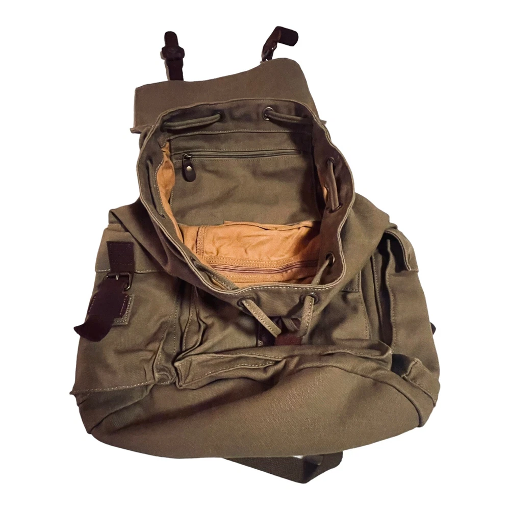 Oordee Canvas Rucksack Backpack Leather Accents Army Green Hiking School Sz L. Condition: New Color: Army Green Size: Large Measurements: 19" H x 13.8" L x 7.8" W Canvas with natural leather trim rucksack daypack school backpack Heavy duty High Quality Rugged and durable Flap over Snap with drawstring closure and extra security Adjustable padded shoulder straps Can fit your laptop and other essentials whether used for hiking or school Makes a great gift for yourself or loved one Please check out all photos as they are part of the description and they verify details What you see is what you get Colors may vary depending on camera lighting and your personal perspective Buy with Confidence from a trusted and seasoned Ebayer who Ships Fast I have been selling on Ebay since 1998 Customer satisfaction is my #1 Priority Please review my stellar feedback for buying peace of mind Plus I stand behind my products with a 30 Day Return Policy All items are securely wrapped to insure safe shipment Don't let this one get away Buy Today Buy it Now Thank you for your interest I look Forward to Doing Business with You Have a Great Day!
