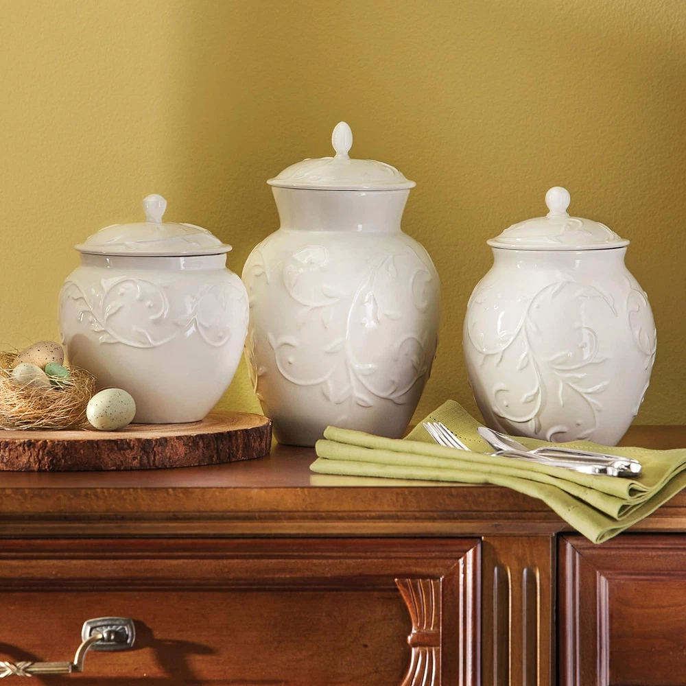 Store New Arrivals Add to Favorite View Feedback Contact Opal Innocence Carved 3-Piece Canister Set, 6.00 LB, White Description Unit Count 3.0 Count Style Canisters, Set of 3 Capacity 78 Fluid Ounces Item Volume 15 Liters Package Quantity 1 Color White Is the item dishwasher safe? Yes Material Porcelain Material Type Porcelain Material Features Porcelain Global Trade Identification Number 00882864347527 Material Feature Porcelain Recommended Uses For Product Dry foods Is the item microwaveable? Yes Additional Features shatterproof Item Form cylindrical Product Care Instructions Dishwasher Safe Crafted of porcelain Dishwasher safe shatter resistant pitcher with 56 ounce capacity; soft grip handle Large Canister measuring a height of 11 inches Measuring heights of 7 3/4 inches; 9 1/2 inches Coordinates with Opal Innocence Carved dinnerware Our popular Opal Innocence scroll dinnerware motif appears in raised relief on the fine porcelain Opal Innocence Carved Canisters. The white on white motif will coordinate with virtually any kitchen decor. ABOUT US We offer the best prices around on high quality products. Our E-store includes media such as books, movies, music and games while offering electronics, toys, sporting apparel, clothing, tools, general home, garden items and more. SHIPPING We are always working hard to ensure your package arrives as soon as possible. Please understand that some factors like weather, high postal traffic, and the performance of shipping companies are outside of our control. We offer free shipping to the lower 48 states and ship within 2 business days of payment, usually sooner. We do not accept P.O. Boxes. Please provide a physical address. For shipping outside of the continental USA, we only use eBay's Global Shipping Program.The item is shipped to KY and then sent to the rest of the world. International customers are responsible for all duties and taxes. Continue to check out in order to calculate costs for shipping the item to your country. Messages regarding eBay's Global Shipping Program MUST be directed at eBay EXCLUSIVELY. RETURNS We offer a 30-Day Return Policy on items which you are not completely satisfied with. You have the option for a full-refund or an exchange of the item. No returns are available on items shipped outside of the USA. PAYMENT We accept PayPal. CONTACT US This page content is yet to come Please ad us to your favorite seller and visit again later Thank You CUSTOMER SATISFACTION We try our very best to make sure every customer is completely satisfied. If there's a problem, message us! We're happy to help. WE ACCEPT Copyright © 2021 AutoDS. | All Rights Reserved
