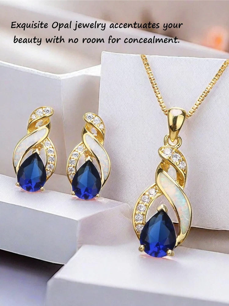 Opal Jewelry Set for Women- Infinity Necklace with Cubic Zirconia Gold Plated Earrings Created Opal Necklace for Women Birthday Gift Product Details Color: G-W-L Brand: orilace MPN: Does not apply UPC: Does not apply EAN: Does not apply Package Dimensions : 3.14 x 3.14 x 0.51 inches; 0.9 ounces Department : womens Date First Available : June 8, 2024 Brand, Seller, or Collection Name: orilace Metal: gold plated brass Material: Brass Gem Type: Cubic Zirconia Chain: Box Clasp: Lobster Clasp Embark on a journey of elegance with our exclusive Opal Jewelry Set, a timeless ensemble that will complement any ensemble with a touch of sophistication and radiance. This set is a perfect choice for a birthday gift, adding a special touch to the celebrations of a woman who appreciates the finer details of life. The Infinity Necklace, at the heart of this ensemble, is a graceful representation of the never-ending bond of love and friendship. Adorned with blue opal stones, it captures the essence of tranquility and peace, a perfect complement to any woman's wardrobe. The necklace's delicate chain and sleek design ensure both comfort and elegance, making it a piece that can be worn on any occasion. Complementing the necklace are the Cubic Zirconia Gold Plated Earrings. These exquisite earrings are crafted with precision and care, using cubic zirconia stones that mimic the sparkle and brilliance of diamonds. The gold plating adds a touch of luxury, ensuring that these earrings will never go unnoticed. Whether paired with the Infinity Necklace or worn alone, these earrings are sure to enhance any ensemble.