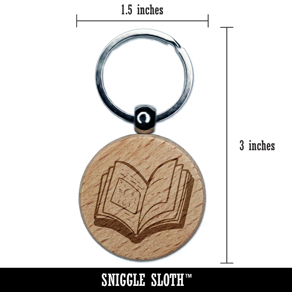 Open Book Engraved Wood Round Keychain Tag Charm