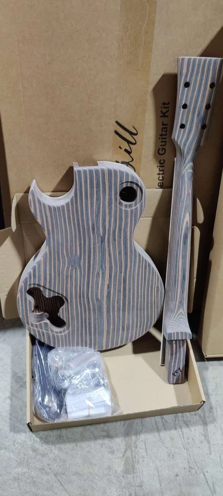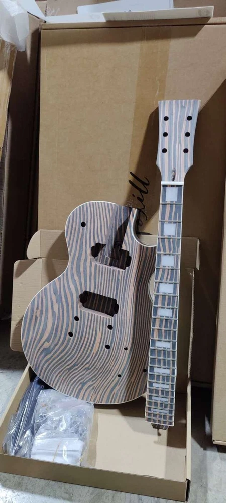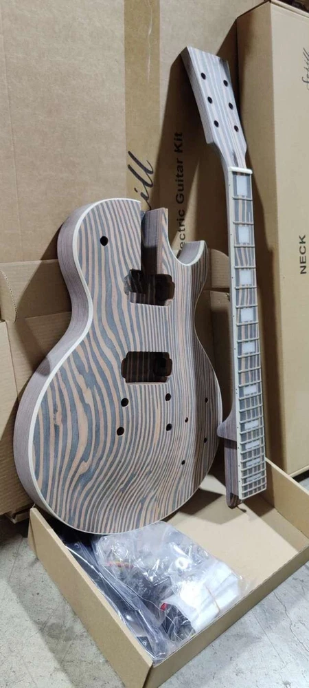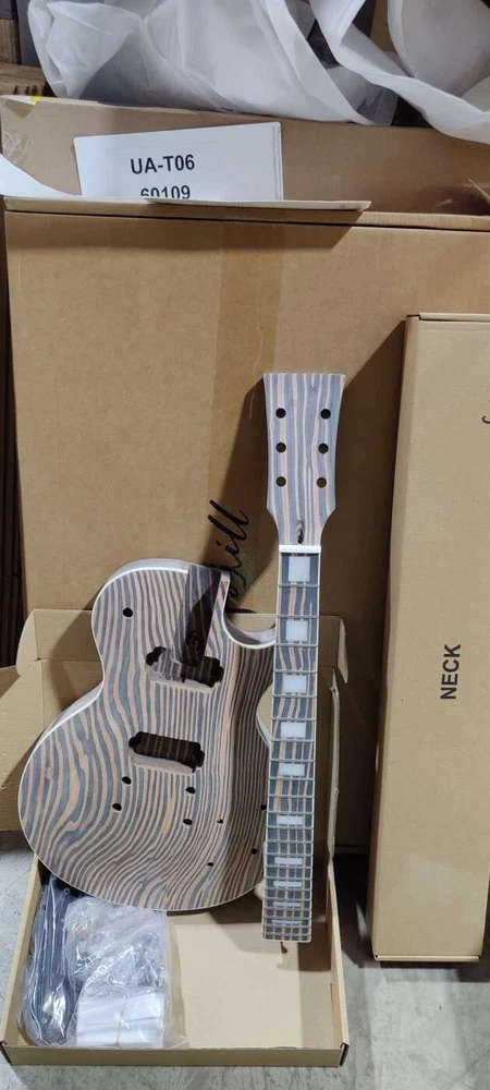 Open Box DIY 6 Six Electric Guitar Kit Zebrawood Body Rosewood Fingerboard 109