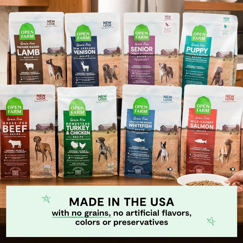 Open Farm, Grain-Free Dry Dog Food, Complete & Balanced Kibble, Sustainably & Ethically Sourced Ingredients, Non-GMO Veggies & Superfoods, Catch-of-The-Season Whitefish Recipe, 22lb Bag Flavor Name: Seafood Size: 22 Pound (Pack of 1) Brand: Open Farm Flavor: Seafood Age Range (Description): All Life Stages Item Form: Pellet Specific Uses For Product: Sensitive Stomach, Skin and Coat Health, Digestive Health About this item Grain-Free, Nutrient-Dense & Protein Packed - Healthy dry dog food made with real meat, crafted without grains, and featuring wholesome ingredients for optimal nutrition. A Healthy Complete & Balanced Diet - This balanced dog kibble provides nutrients dogs need from ethically sourced proteins, non-GMO produce, and superfoods like pumpkin and coconut oil. Ethically & Sustainably Sourced Ingredients - We use 3rd party certified ingredients, vetted and tested, and you can trace every single ingredient used in this grain-free dry dog food bag. Non-GMO Fruits & Veggies - Made with non-GMO produce, and superfoods like pumpkin and coconut oil to create a balanced and optimal nutritional profile. Traceable & Transparent Ingredients - Grain free dog food made without corn, wheat, soy, or artificial flavors or preservatives – just 100% traceable ingredients for total peace of mind at mealtime.