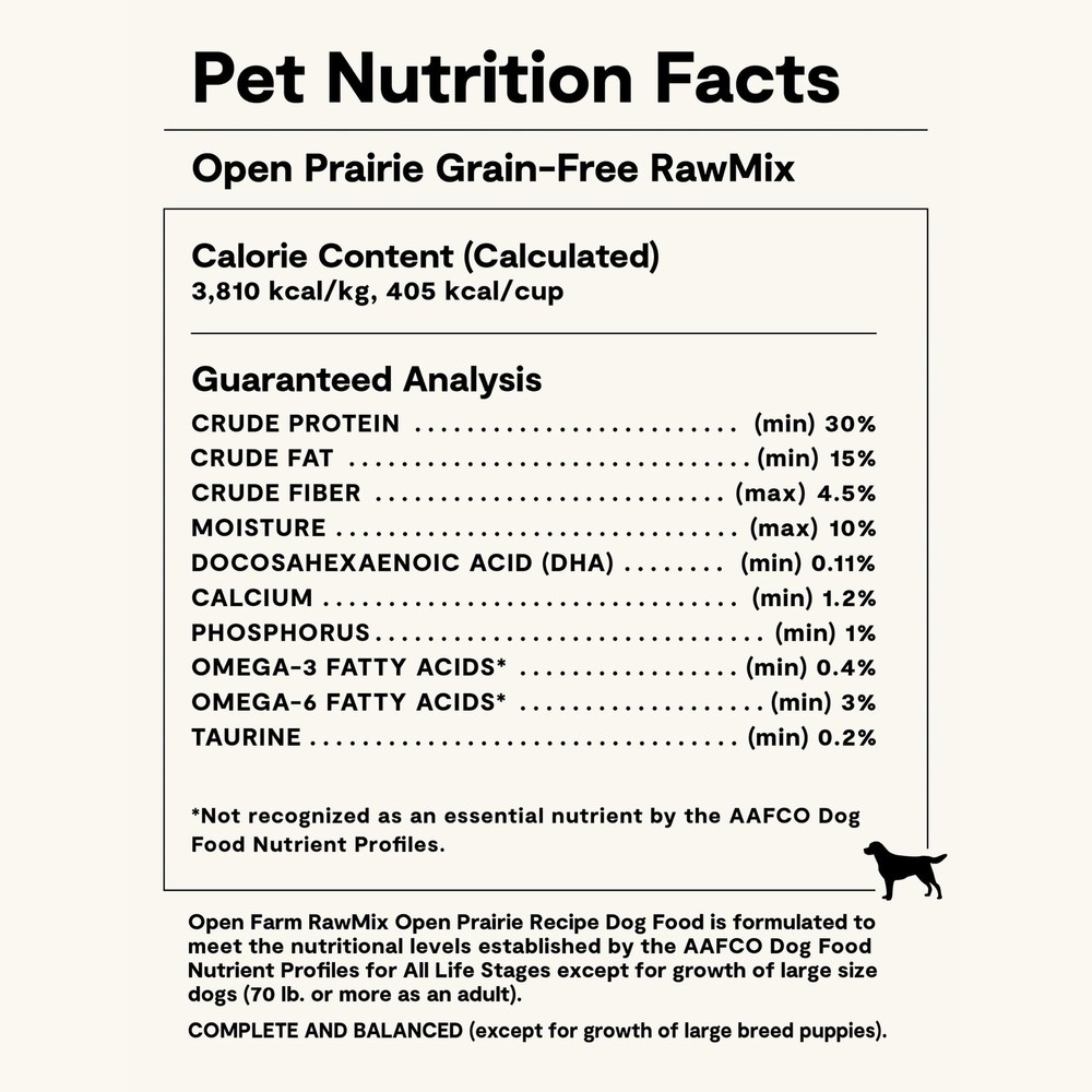 Open Farm, RawMix Grain-Free Dry Dog Food, 3.5 Pound (Pack of 1) Description Features: HUMANELY SOURCED POULTRY - Crafted with a blend of 100% animal welfare certified chicken and turkey, this flavorful recipe includes nutrient-dense meat, organ, and bone with no grains, legumes or any byproducts so you can feel good about the food that's in your dog's bowl. RAWMIX - These recipes offer pet parents whole-prey, meat-focused, nutrient dense, kibble recipes with the added benefits of bone broth and freeze dried raw. These diets include meat, organs and bone broth, and deliver optimal taste and nutrition for your pet! REWILD YOUR DOG’S BOWL - Perfect for pet parents that are seeking to feed animals as they thrive in the wild, with protein-focused diets, and the convenient, added nutrient of freeze-dried raw. For those pet parents curious about raw nutrition, but not yet ready to fully switch to raw, RawMix is a great option for your furry friend. QUALITY & SUSTAINABLE PRACTICES - At Open Farm we believe that great nutrition is rooted in the integrity of our ingredients. All of the meat, organ and bones included in these recipes are sourced from 3rd party animal welfare certified farms. By working exclusively with farmers who share our commitment to exceptional quality and sustainable practices, we can make better food for your pets, while also doing some good for family farms, farm animals and the environment. 100% TRANSPARENCY: As a part of our commitment to transparent sourcing practices, we provide owners with the ability to trace the origin of every ingredient using the lot number on the bag, because where pet foods come from shouldn’t be a mystery. Product Details: Handling We will ship all orders within 1 business day of payment. Delivery We Do Not Ship Outside of the Continental US. Return Policy All items qualify for returns within 30 days of receipt. Buyer is responsible for return shipping on any item that is not damaged. Feedback We take our reputation seriously, we buy and sell online, so we understand the value of trust. If you are unsatisfied with your order, please contact us and we will work with you to resolve it to your satisfaction.