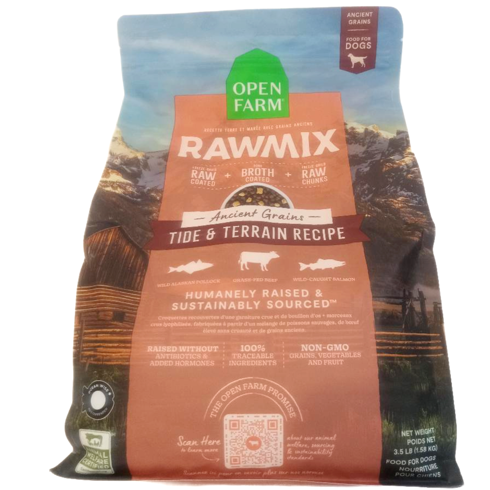 Open Farm Rawmix Dog Food Tide And Terrain Recipe Dry Food 3.5 lbs Grain Free The Open Farm Rawmix Dog Food Tide And Terrain Recipe Dry Food is a grain-free pet supply suitable for dogs of all life stages. This 3.5-pound pack of dry food features the Front Range Recipe flavor, making it tailored for adult dogs of medium to large size. Manufactured by Open Farm in the United States, this product offers quality nutrition for canines, promoting optimal health and well-being. With a pack size of 3.5 pounds, this dry food is an essential addition to any dog's diet plan. *** Item Descriptions *** Brand - Open Farm Condition - New Type - Dry Food Flavor - Tide & Terrain Recipe Weight - 3.5 lbs Expiration - 12/20/25 Life Stage - Adult Features - Grain-Free Made In - United States UPC# - 683547129399