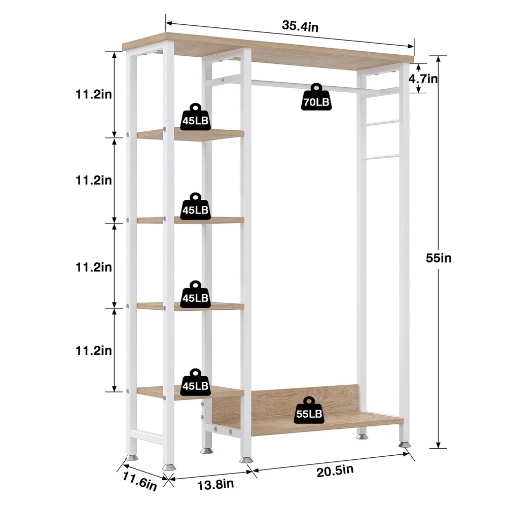 Open Garment Clothing Rack, Free-Standing Heavy Duty Storage Closet with 5 Sh...