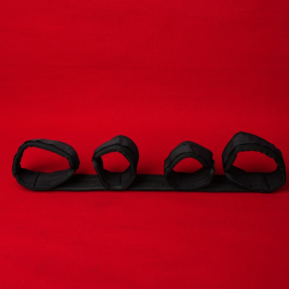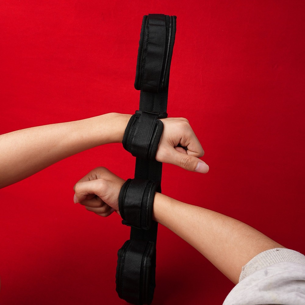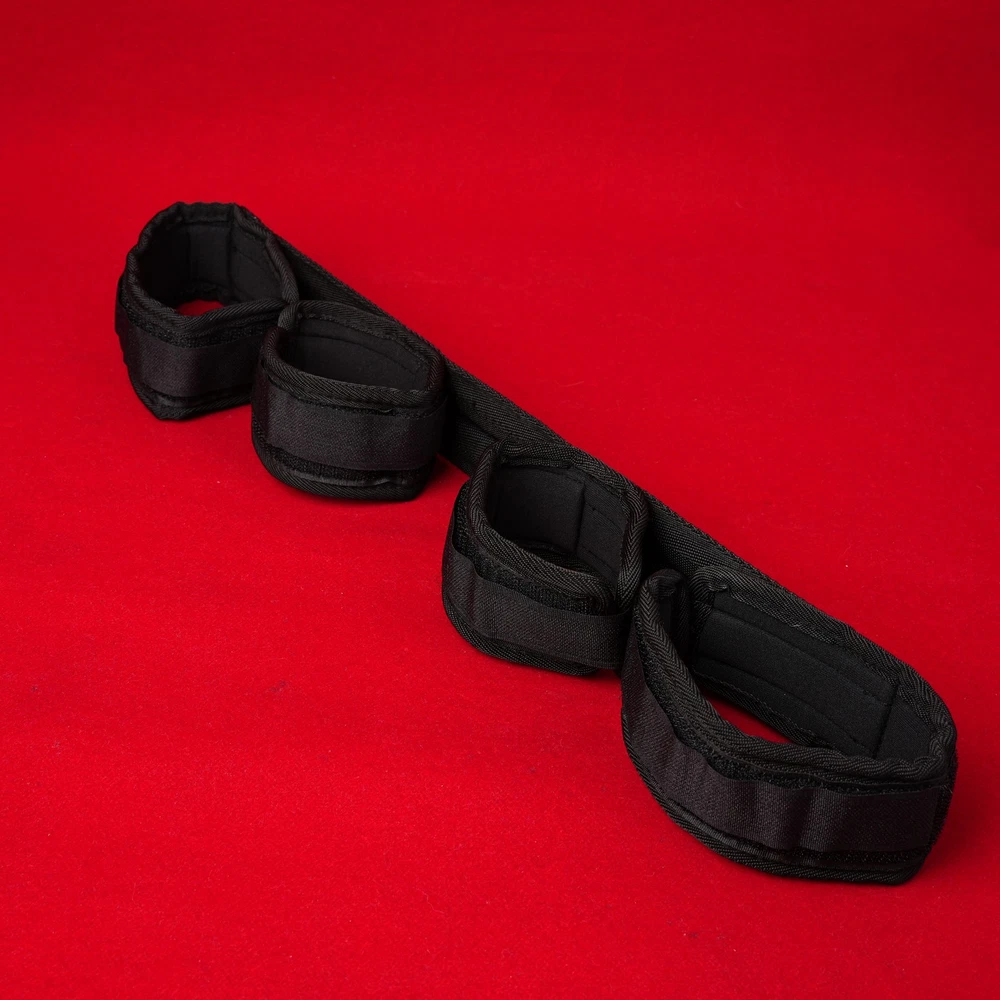 <> <> 100% Brand New! Adjustable length wrist and ankle cuffs. Easily concealed by tucking under matress when not in use. Thick nylon straps provide extra security. Quick release clips for added safety. Bar Length: 41.5cm Handcuff: 25cm Ankle cuff: 29cm Net Weight: 175g Package included: 1 x Spreader Cuffs