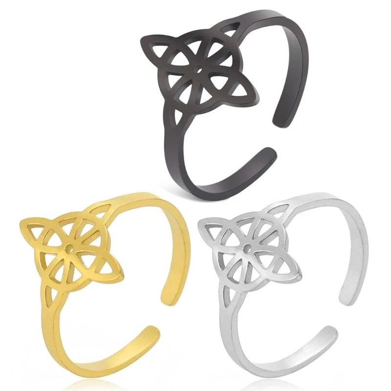 Features: stainless steel which has the advantages of not fading, not easy to scratch and leaving marks, and not deformed. Adjustable size fits most people, so you can buy it without any worries. Witches knot shape deep engrave pattern, clearly and never fade. for your daughter, wife, mother, sister or Suitable Day, Easter, Mother's Day, communion, graduation, Christmas, birthdays or anniversaries. Specifications: Stainless Steel Color: Golden/Steel Color Weight: Approx. 1.2g Width: Approx. 0.59inch(15.2mm) Thickness: Approx. 0.03inch(1.0mm) Package Includes: 1x Stainless Steel Witch Knot note: Please allow 1-2cm errors due to manual measurement. Due to the difference between different monitors, the picture may not reflect the actual color of the item.