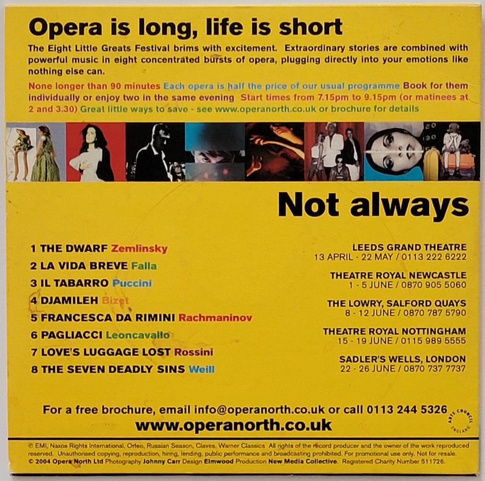 8 Little Greats Highlights. A festival of short but grown up opera. See photo for tracklisting. CD in card sleeve. Good condition. Postage will be combined for multiple purchases.