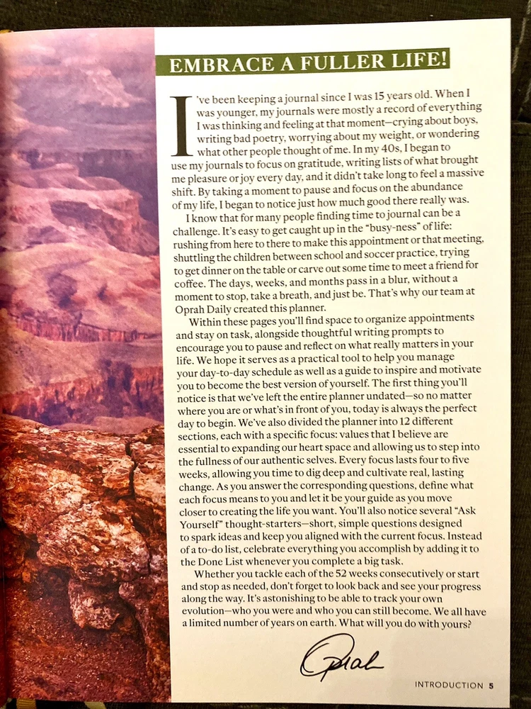 UPC: Does not apply Brand: Oprah Calendar Year: undated Size: Large Material: Hard Bound Type: Planner MPN: NA gtin13: Does not apply Format: Daily