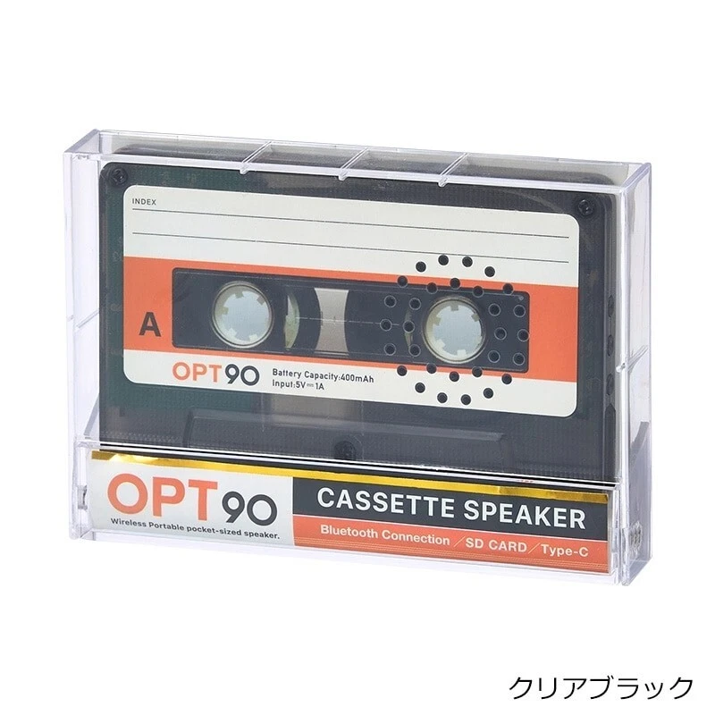 Opt! Opt90 Cassette Tape-Type Speaker Bluetooth Portable Speaker Clear Black Description About This Items A retro and stylish cassette tape-type Bluetooth speaker has just arrived! It also supports SD cards, allowing you to enjoy it like an old mixtape♪ Lightweight and compact, the storage case doubles as a stand. When you close the lid, the sound quality changes, giving you the ability to adjust the sound based on how you use it. Retro and Stylish Speaker This Bluetooth speaker is designed to resemble the cassette tapes that were hugely popular in the 80s and 90s, combining retro aesthetics with modern functionality. SD Card Support You can insert an SD card and enjoy music just like an old mixtape. Note: Only MP3 files on the micro SD card are supported. Storage Case Doubles as a Stand Lightweight and compact, the storage case also serves as a stand. When you close the lid, the sound quality changes, allowing you to adjust it based on how you use it. Important Notes This product is not a cassette tape. It is a Bluetooth speaker inspired by cassette tapes. Speaker Type: Portable Battery Capacity: 400mAh Battery Life: 6 hours Charging Time: 2 hours Bluetooth Version: Bluetooth 5.3 NFC Function: Not supported Dimensions Width: 100mm (Main body) / 110mm (Case) Height: 63mm (Main body) / 77mm (Case) Depth: 12mm (Main body) / 19mm (Case) Weight: 80g (Including dedicated case) Color: Yellow Other Specifications Main Body Material: ABS resin, Iron Size: Approx. 100×63×12mm Weight: Approx. 80g (Including dedicated case) Bluetooth Version: 5.3 Battery Capacity: 400mAh (Lithium-ion battery) Rated Voltage: 5V = 1A Power Consumption: 2W Continuous Playback Time: Approx. 6 hours (at maximum volume) Charging Time: Approx. 2 hours Certification: Technical Standards Conformance Certification: R219-239467 Shipping [Economy Shipping] No Tracking 2-4 Weeks [Expedited Shipping] FedEx (+Tracking Number) It arrives in 2 days to 1 week. Please note: The lead time for shipping depends on flight schedules and customs clearance procedures for each country. Due to a reduction in airplane availability, shipping times may be longer than usual. International Buyers: Please note that import duties, taxes, and charges are not included in the item price or shipping cost. These charges are the buyer?s responsibility. Prior to bidding or buying, please check with your country?s customs office to determine what these additional costs will be. We do not mark merchandise value below its actual value or mark items as gifts, as this is prohibited by Japan and international government regulations, as well as eBay rules. About Importer's Obligation Import duties, taxes, and charges are not included in the item price or shipping cost. These charges are the buyer's responsibility. Please check with your country's customs office to determine what these additional costs will be prior to bidding or buying. Thank you for your understanding.