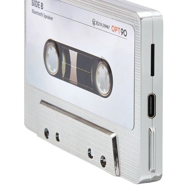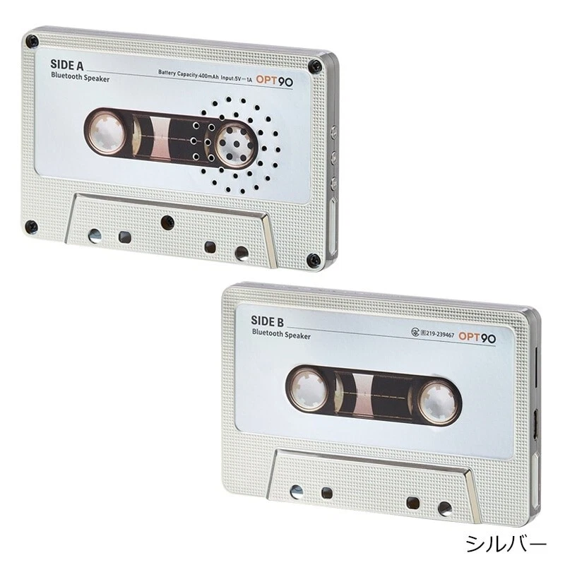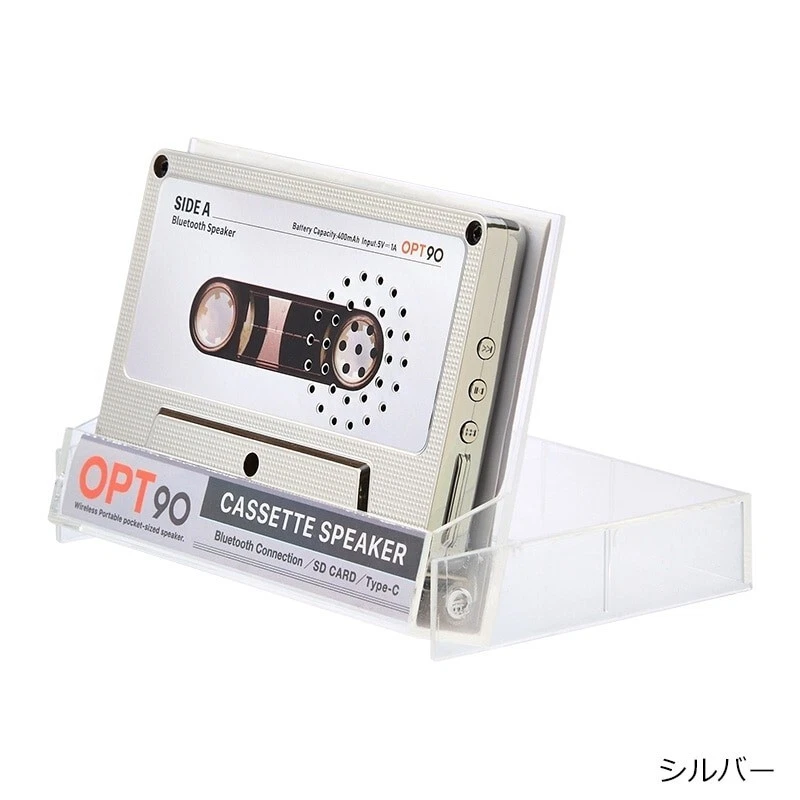 Opt! Opt90 Cassette Tape-Type Speaker Bluetooth Portable Speaker Sliver Description About This Items A retro and stylish cassette tape-type Bluetooth speaker has just arrived! It also supports SD cards, allowing you to enjoy it like an old mixtape♪ Lightweight and compact, the storage case doubles as a stand. When you close the lid, the sound quality changes, giving you the ability to adjust the sound based on how you use it. Retro and Stylish Speaker This Bluetooth speaker is designed to resemble the cassette tapes that were hugely popular in the 80s and 90s, combining retro aesthetics with modern functionality. SD Card Support You can insert an SD card and enjoy music just like an old mixtape. Note: Only MP3 files on the micro SD card are supported. Storage Case Doubles as a Stand Lightweight and compact, the storage case also serves as a stand. When you close the lid, the sound quality changes, allowing you to adjust it based on how you use it. Important Notes This product is not a cassette tape. It is a Bluetooth speaker inspired by cassette tapes. Speaker Type: Portable Battery Capacity: 400mAh Battery Life: 6 hours Charging Time: 2 hours Bluetooth Version: Bluetooth 5.3 NFC Function: Not supported Dimensions Width: 100mm (Main body) / 110mm (Case) Height: 63mm (Main body) / 77mm (Case) Depth: 12mm (Main body) / 19mm (Case) Weight: 80g (Including dedicated case) Color: Yellow Other Specifications Main Body Material: ABS resin, Iron Size: Approx. 100×63×12mm Weight: Approx. 80g (Including dedicated case) Bluetooth Version: 5.3 Battery Capacity: 400mAh (Lithium-ion battery) Rated Voltage: 5V = 1A Power Consumption: 2W Continuous Playback Time: Approx. 6 hours (at maximum volume) Charging Time: Approx. 2 hours Certification: Technical Standards Conformance Certification: R219-239467 Shipping [Economy Shipping] No Tracking 2-4 Weeks [Expedited Shipping] FedEx (+Tracking Number) It arrives in 2 days to 1 week. Please note: The lead time for shipping depends on flight schedules and customs clearance procedures for each country. Due to a reduction in airplane availability, shipping times may be longer than usual. International Buyers: Please note that import duties, taxes, and charges are not included in the item price or shipping cost. These charges are the buyer?s responsibility. Prior to bidding or buying, please check with your country?s customs office to determine what these additional costs will be. We do not mark merchandise value below its actual value or mark items as gifts, as this is prohibited by Japan and international government regulations, as well as eBay rules. About Importer's Obligation Import duties, taxes, and charges are not included in the item price or shipping cost. These charges are the buyer's responsibility. Please check with your country's customs office to determine what these additional costs will be prior to bidding or buying. Thank you for your understanding.