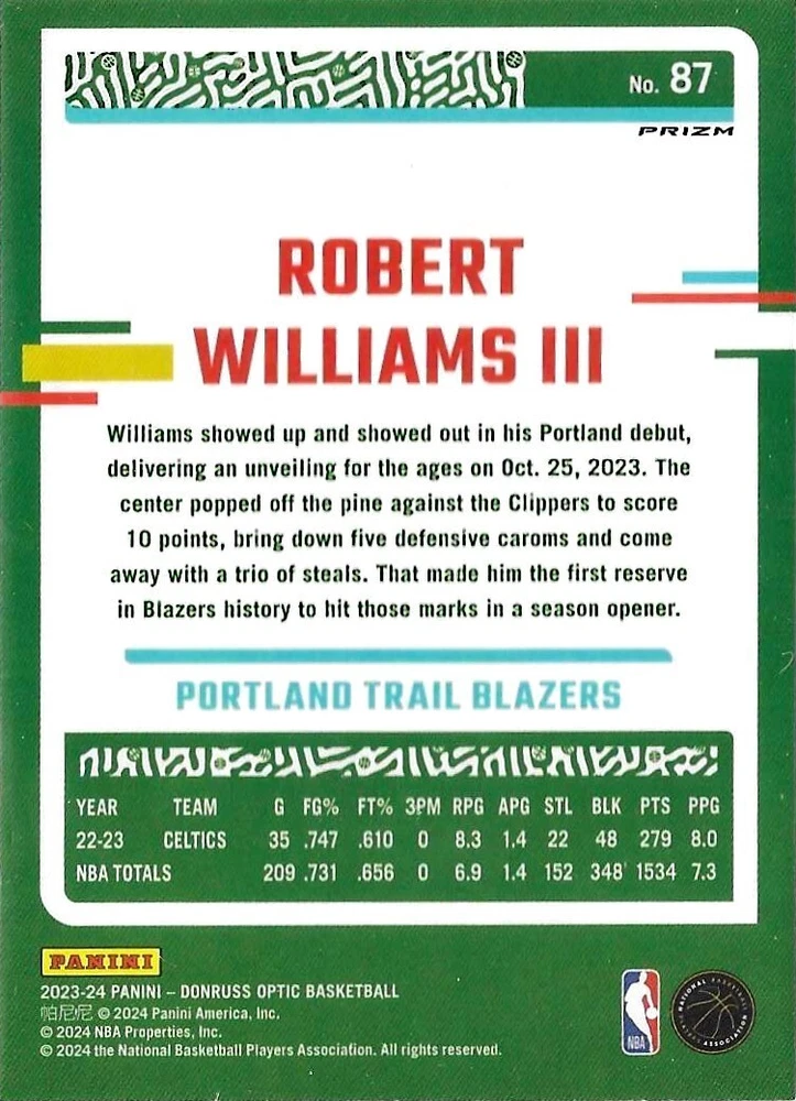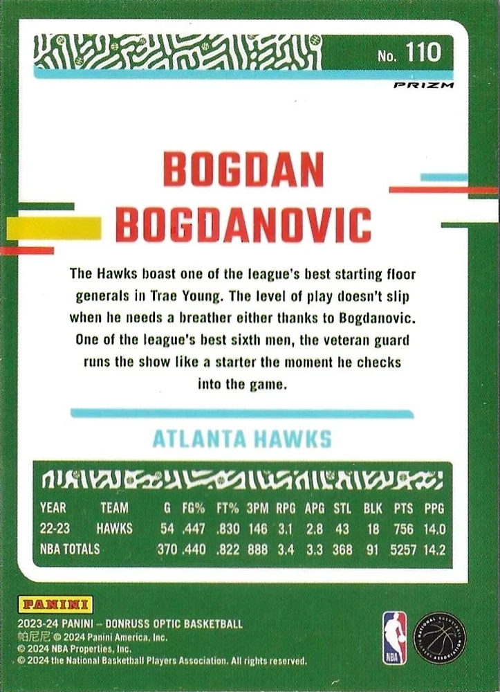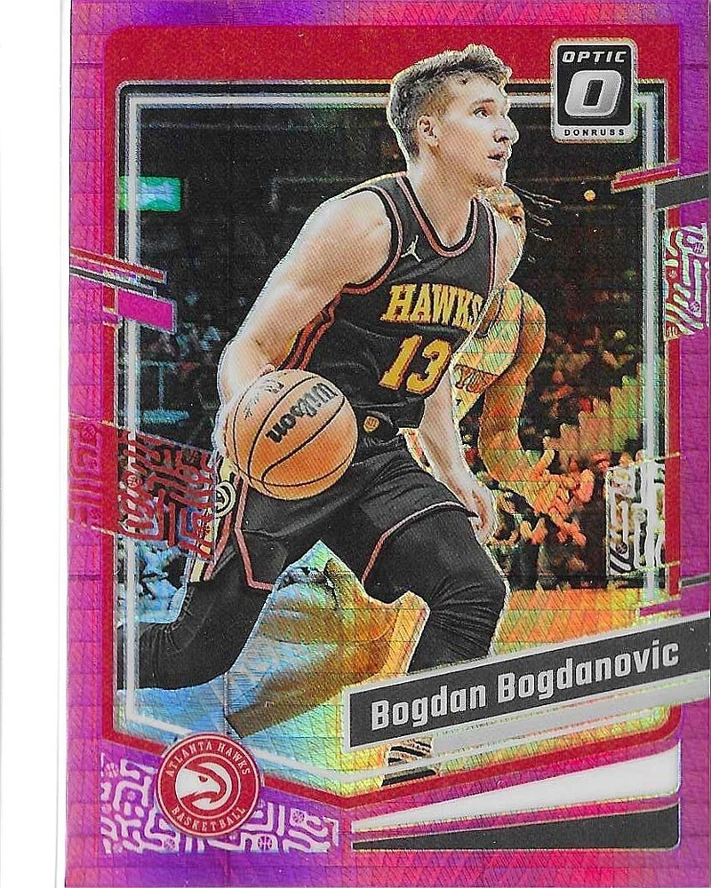 This Panini Donruss Optic trading card lot features a collection of talented basketball players including Bogdan Bogdanovic, De'Aaron Fox, and Zach LaVine. The cards are from the 2023-24 and 2020-21 seasons and are perfect for any fan of the National Basketball Association (NBA). The cards are standard size and manufactured in the United States by Donruss. This lot does not include any autographed cards and is a great addition to any sports trading card collection. The Optic parallel/variety adds an extra layer of uniqueness to this lot.