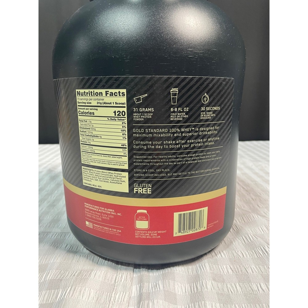Optimum Nutrition Gold Standard 100% Whey Protein Powder in Vanilla Ice Cream flavor provides high-quality muscle support and recovery. Each serving contains 24 grams of protein, 5.5 grams of naturally occurring BCAAs, and only 1 gram of sugar. This gluten-free formula is designed for maximum mixability and superior drinkability, making it an ideal post-workout supplement or anytime protein boost. Measurements: • Net Weight: 5 lb (2.26 kg) • Servings: 73 • Protein per Serving: 24g