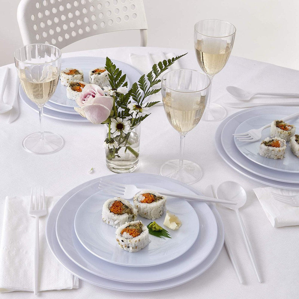 OPULENCE COLLECTION DISPOSABLE SPOONS | Heavy Duty Plastic Flatware | 20 Spoons | for Upscale Wedding and Dining (Pearl) PREMIUM QUALITY – This beautiful and versatile white plastic silverware set is composed of high-heavyweight plastic materials rendering it strong enough for every type of food you might be serving. These flatware are 100% food and safe to use for a fine dining experience EXQUISITE DESIGN – This Opulence disposable spoons has a simple design which gives them a classy and elegant accent. The white color has a pearl like appearance which makes it a perfect product to complement any color scheme and upgrade your event to a higher standard. COST EFFICIENT & AFFORDABLE: With this dazzling set of disposable flatware you get the look of high-end silverware, at an affordable price. Bring your party to a higher level without compromising on quality and reliability with this elegant Opulence flatware set. DESIGNED FOR ALL OCCASIONS: Our cutlery sets are ideal for all occasions. They can transform a simple table setting into a stylish . These flatware are a perfect option for upgrading banquets, weddings, engagements, birthdays, parties, baby showers, upscale catering and home dinners, etc. CONVENIENCE – These spoons are disposable; however, you can reuse them if you wish. Package Includes: 20 spoons. Check out our matching plates, flatware and more from Opulence Collection
