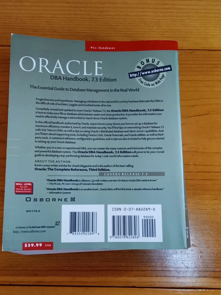 This comprehensive guide is the perfect resource for anyone looking to learn or enhance their knowledge of Oracle databases. Written by Kevin Loney, the 7.3 edition of the Oracle DBA Handbook is a must-have for anyone in the database field. The book covers a wide range of topics, from basic database management to more advanced features and functions. With a focus on practical advice and tips, this trade paperback book is an excellent addition to any DBA's library. The book is written in English and was first published in 1996. Whether you are a seasoned professional or just starting out, the Oracle DBA Handbook is an essential resource for anyone interested in mastering the art of database management.