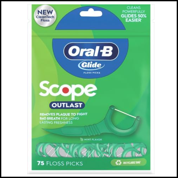 Oral-B Complete Glide Scope Outlast Dental Floss Picks Long-Lasting Mint 75 Each Dental Floss Type Dental Floss Item Form Stick Flavor scope outlast Special Feature Flavored