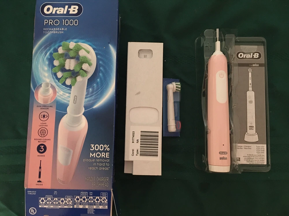 Oral-B Pro 1000 Electric Toothbrush Rechargeable PINK NEWEST 3 MODE MODEL New and Complete in open box as shown. Box may have slight damage. Contents are perfect.FAST FREE SHIPPING