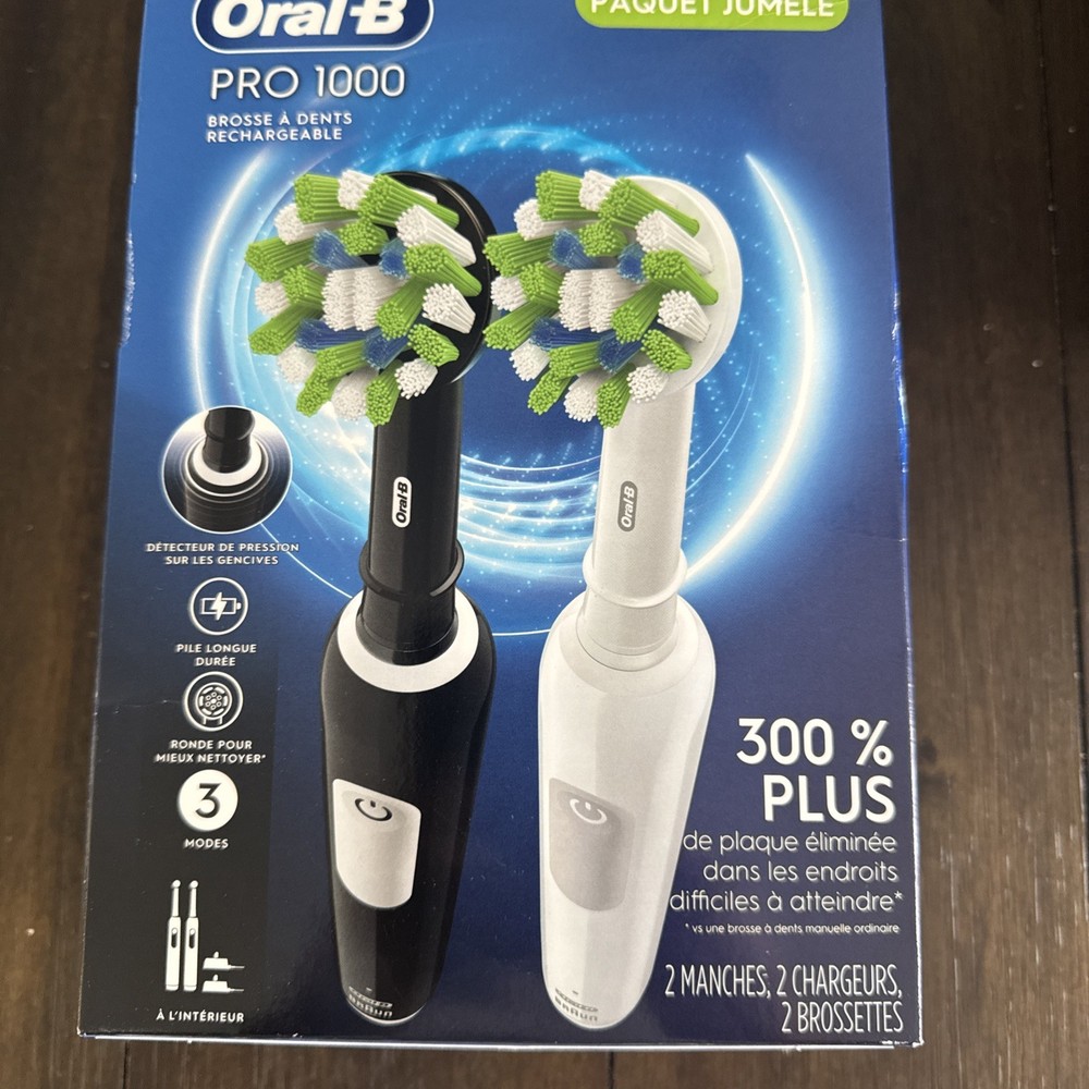 Oral-B Pro 1000 Electric Toothbrushes, Black and White, 2 Count - New.