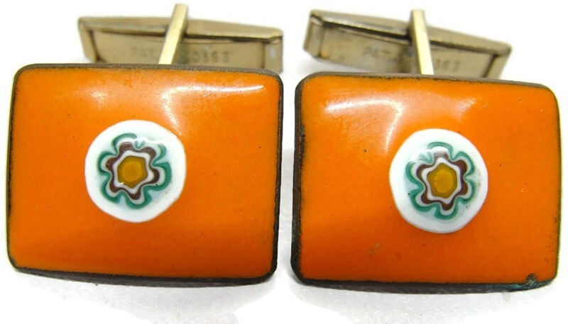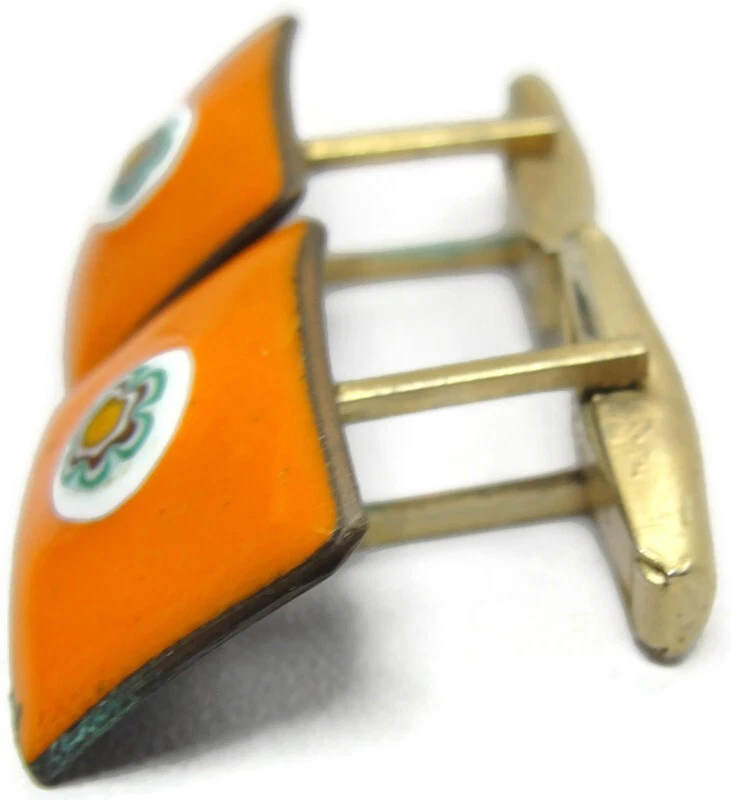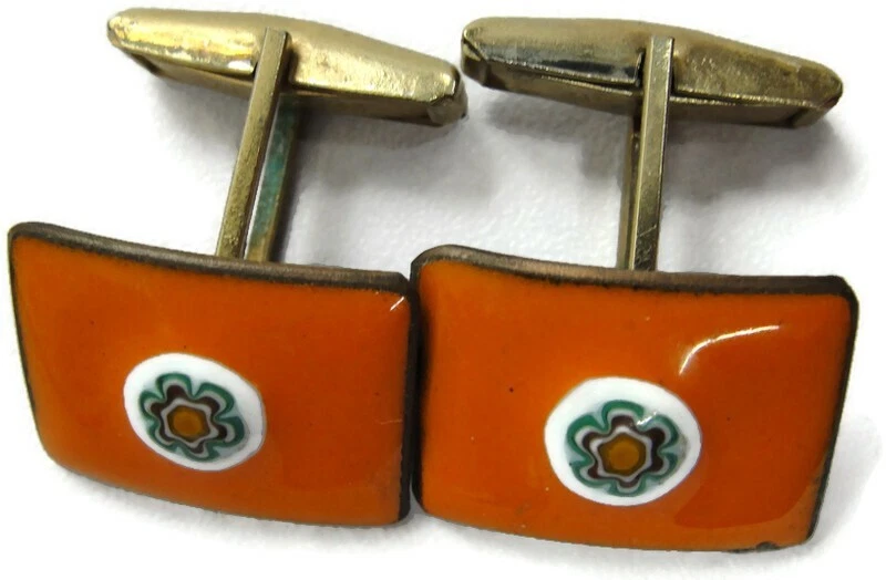 Orange Mosaic Enamel Cufflinks Rectangle Shirt Accessories Wedding Vintage