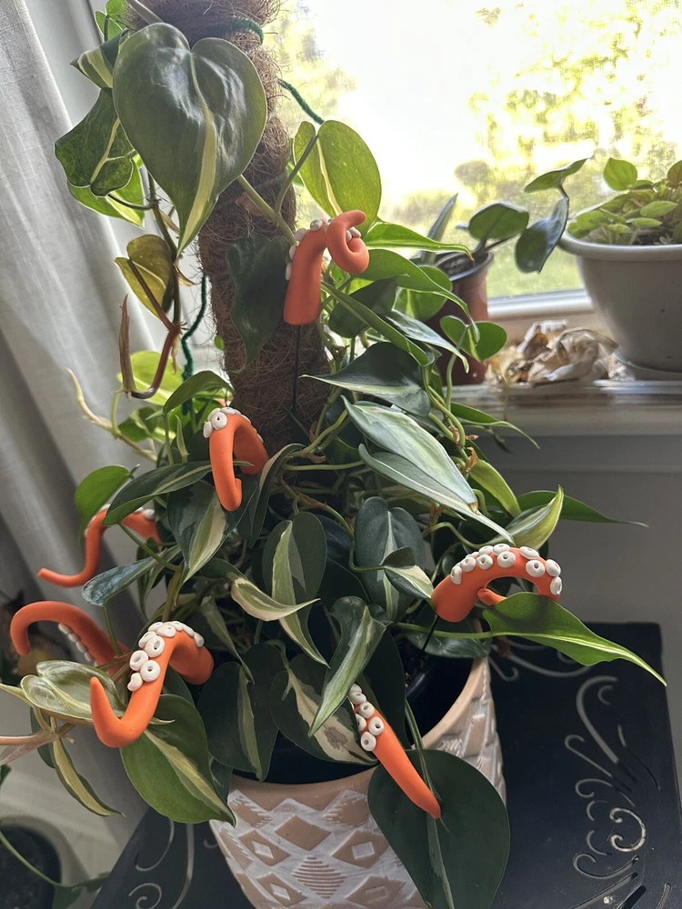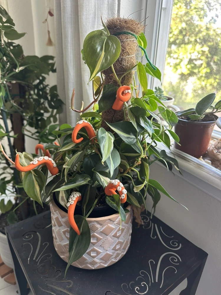 Sea Creature Tentacles Plants Decor Plant Friend Fall, Halloween, Spring Octopus Description* Sea Creature Tentacles - Polymer Clay ( set is only 8 tentacles) PICK YOUR COLOR •Product Info Customize your plants with these versatile octopus leg decorations. Use them to create a playful underwater scene, a spooky Halloween display, or a quirky touch to your home-the possibilities are endless! Reminders and Things to Know: # You will obtain eight tentacle legs # Size may vary: 6 Inches Tall & 2 Inches Wide + The base where you will plug the tentacle is made from copper wire + Made in the USA + Plant not included Reminders + These are handmade, and we work hard to ensure the final pieces look & measure as close to the item purchased + Each item is UNIQUE Add a touch of oceanic charm to your home decor with these handmade Sea Creature Tentacles Plants. Crafted from polymer clay, these multicolor figurines feature intricate details that bring the wonders of the sea to life. Perfect for any room and any occasion, these modern style figurines are sure to delight teens, adults, and kids alike. Pick your color now!!!! This set of 8 figurines is a must-have for anyone who loves sea creatures, especially those who are fond of octopuses. The Sea Creature Tentacles Plants are a great addition to any home decor collection and make for a fantastic gift. Bring the beauty of the sea into your home today with these unique and captivating figurines.