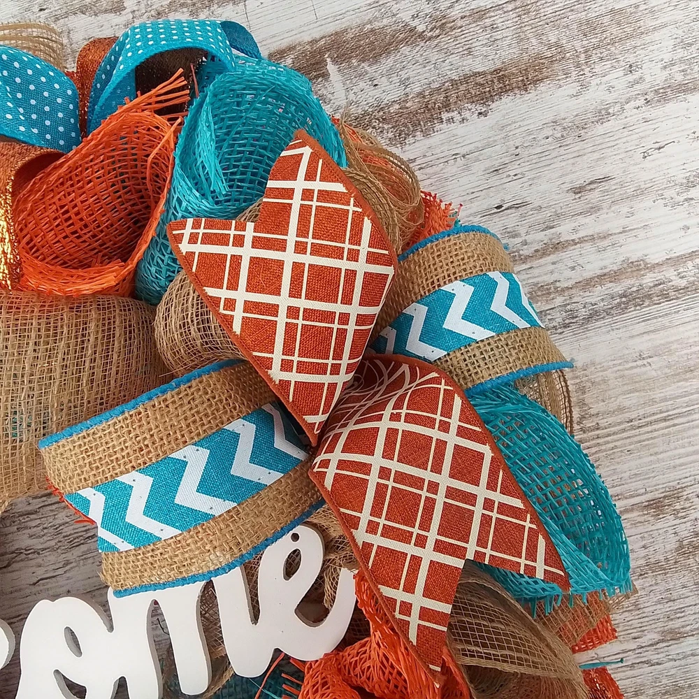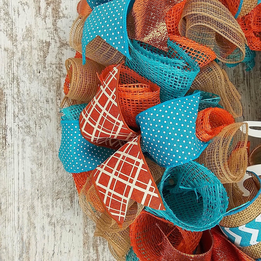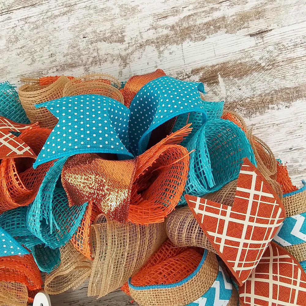 Orange Turquoise Fall Thanksgiving Autumn Wreath