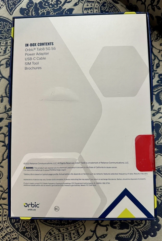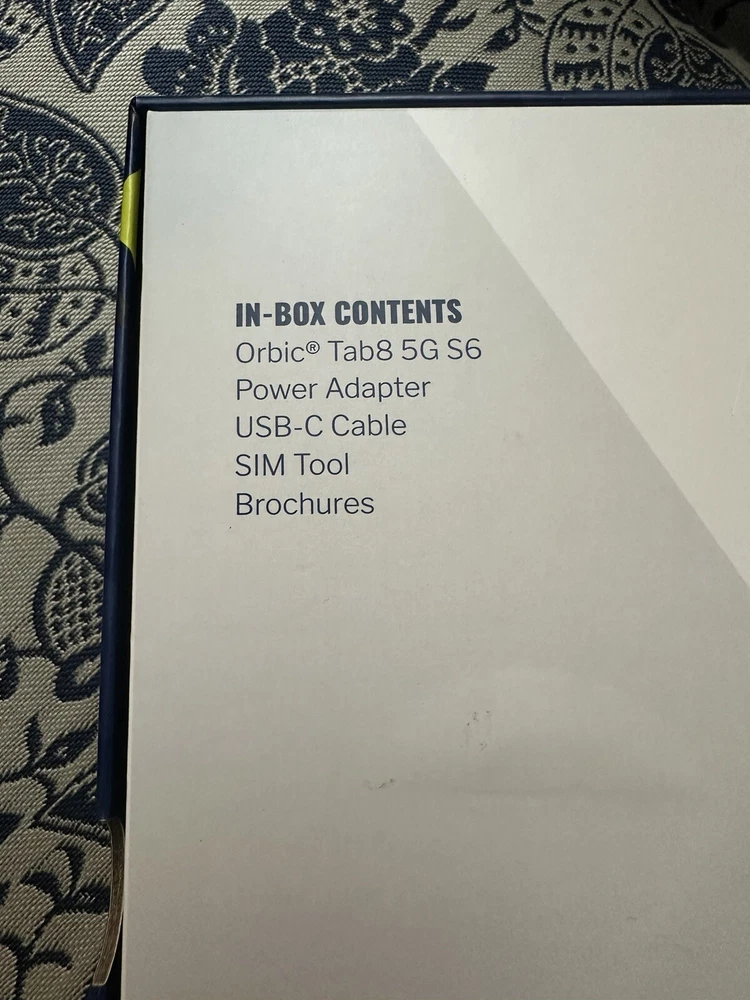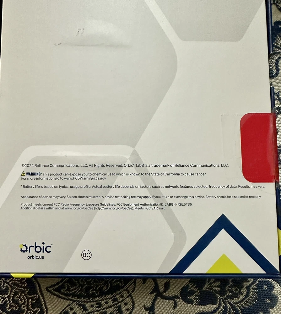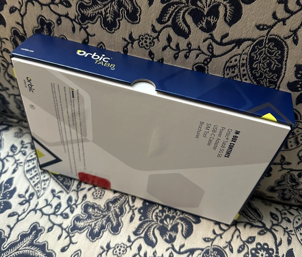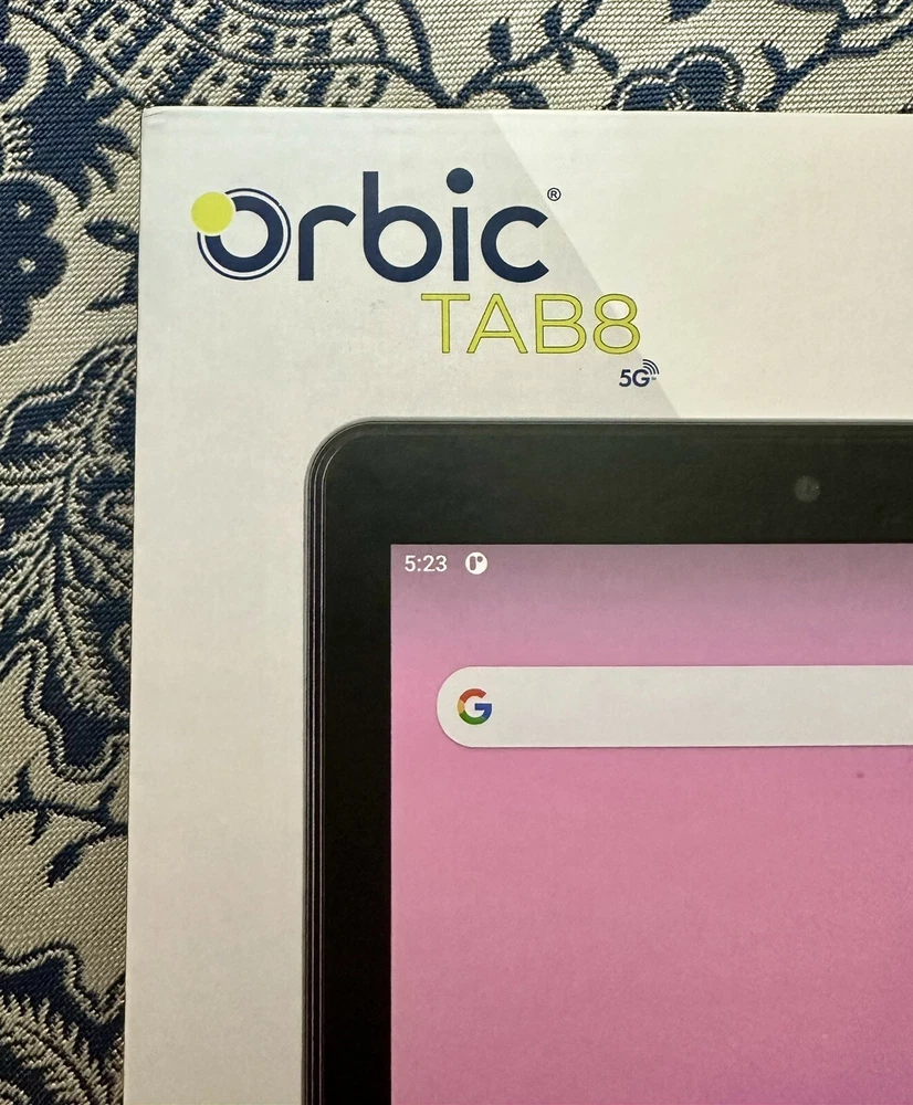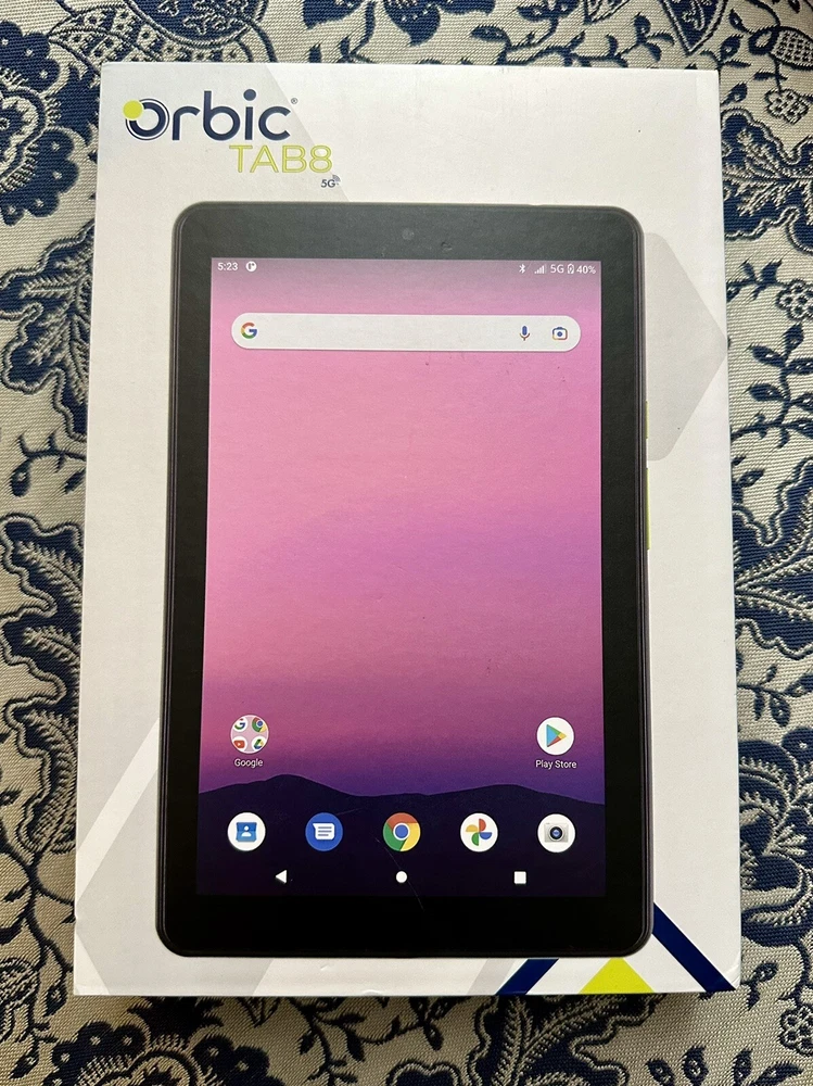 Brand New in Sealed Box Absolutely no returns on this item. I have 100% feedback and this item is new, sealed in the box. It was shown to me by the provider, to confirm the model and new working condition, then sealed again. I cannot return it after being opened or turned on after being purchased through eBay. If anything were to arise later on, the manufacturer for warranty would need to be contacted not me. Thank you. Orbic presents unbridled connectivity with the Tab8 5G – featuring data transfer speeds of up to 2GB per second through Verizon 5G, this powerful, go-anywhere 8” tablet with HD TFT display. Take on the day’s tasks with confidence, the Tab8 5G’s long battery life and ultra-quick battery recharge with Quick Charge 3.0 takes you from posting to streaming, then back again all day long. Low cost, big value - The Orbic Tab8 5G offers lightning-fast connectivity with 5G UWB, that means we’ve harnessed all the latest 5G Ultra Wide Band technology and packed it into a portable 8” powerhouse tablet for entertainment and social media. Peace-of-mind accessibility - Keep up with the latest security updates and have total peace-of-mind knowing that your Orbic Tab8 5G runs on Android R OS. Stay connected Longer - The Orbic Tab8 5G features a powerful, long-lasting battery that lets you take on the day’s tasks with confidence. Running low? Recharge in minutes with Quick Charge 3.0 which charges up to 4 times faster than a conventional charger. Entertainment wherever you are - Enjoy movies and games on the wide 8 inch display. The immersive HD display gives you more screen to watch, play and enjoy all your favourite shows, games or reading materials, the comfortable compact form factor helps keep your hands from getting tired, even when you've been watching or playing for hours. Smile, snap, post - For selfies and group pics, and even cute pet videos, the Tab 8 5G features an 13-mega-pixel rear camera and 8-mega-pixel front camera, and with 5G connectivity, keeping your friends updated is now easier than ever. Specifications Display 8-inch HD TFT 60hz Refresh 16:10 Scratch Resistant Glass QXVGA Resolution 1280x800 Network 5G UW 4G LTE 3G Battery 6000mAh 18 watt charger Quick charge 3.0 for fast charging Durabilty IP54 Connectivity Wi-Fi 2.4 5Ghz Bluetooth 5.0 Size and Weight 209 x 134 x 9.5mm 415g Camera Rear 13MP with flash Front 8MP HD Video Capture Speed-Power Qualcomm® Snapdragon™ 480 5G Octa-core 2.4GHz Memory RAM – 6GB ROM – 128GB Removable - Micro SD up to 1TB OS Android R