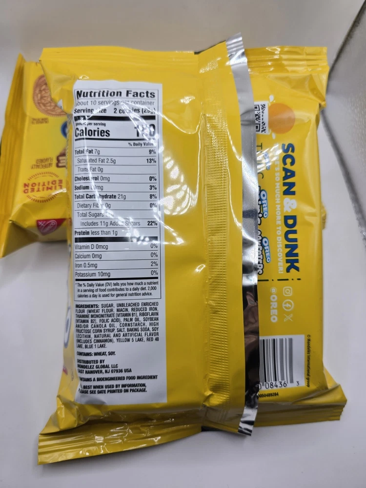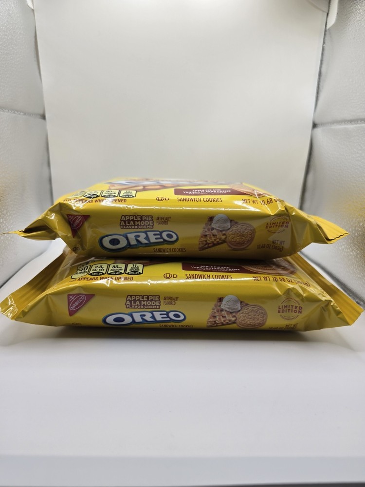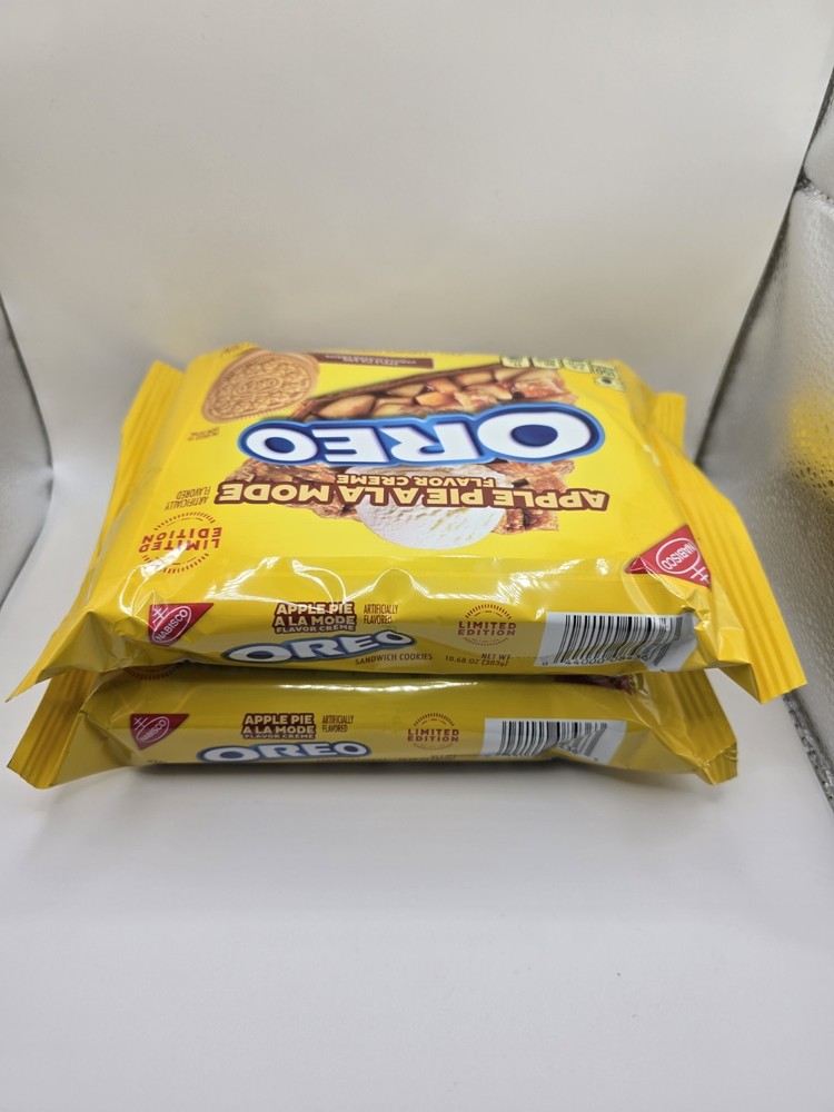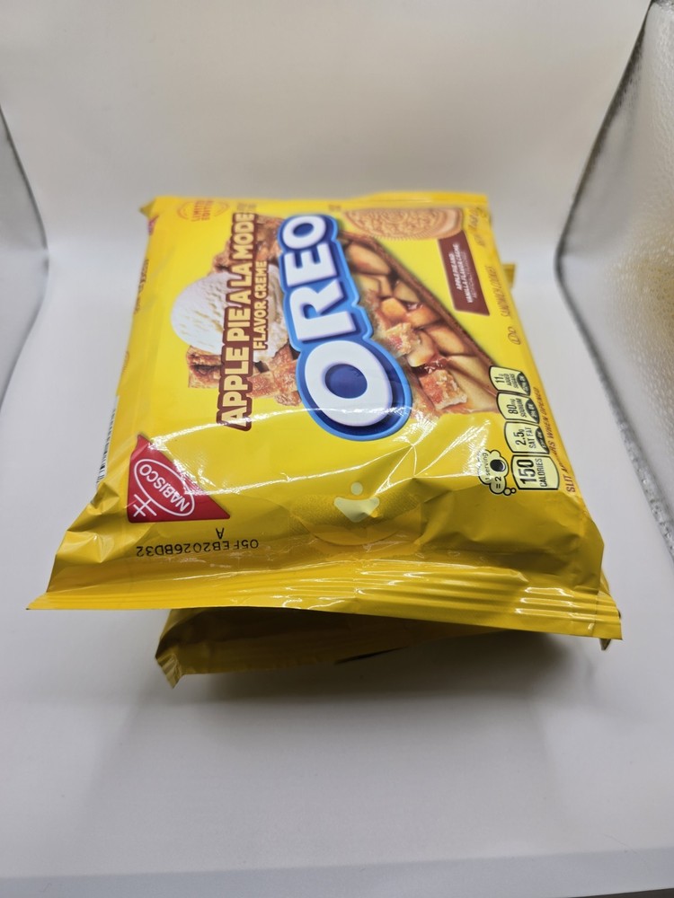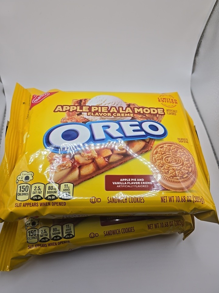 Take a delicious break with OREO Apple Pie a la Mode Sandwich Cookies, a delightful combination of a classic American dessert and milk's favorite sandwich cookie. Supremely dunkable, these delicious OREO cookies feature apple pie and vanilla ice cream-flavored creme filling layered between two crispy vanilla sandwich cookies. Sweet treats that you can pack as lunchbox snacks to surprise loved ones, OREO Apple Pie a la Mode cookies also are great for enjoying with a glass of milk or bowl of ice cream. You even can mix these apple pie cookie snacks into your favorite dessert recipe. These certified kosher snack food cookies are wonderful holiday party snacks, office snacks, lunch snacks, and after-school snacks for kids and adults. The resealable package with easy-pull tab keeps these apple pie-inspired Golden OREO vanilla cookies fresh for snacking, sharing, traveling, or entertaining.