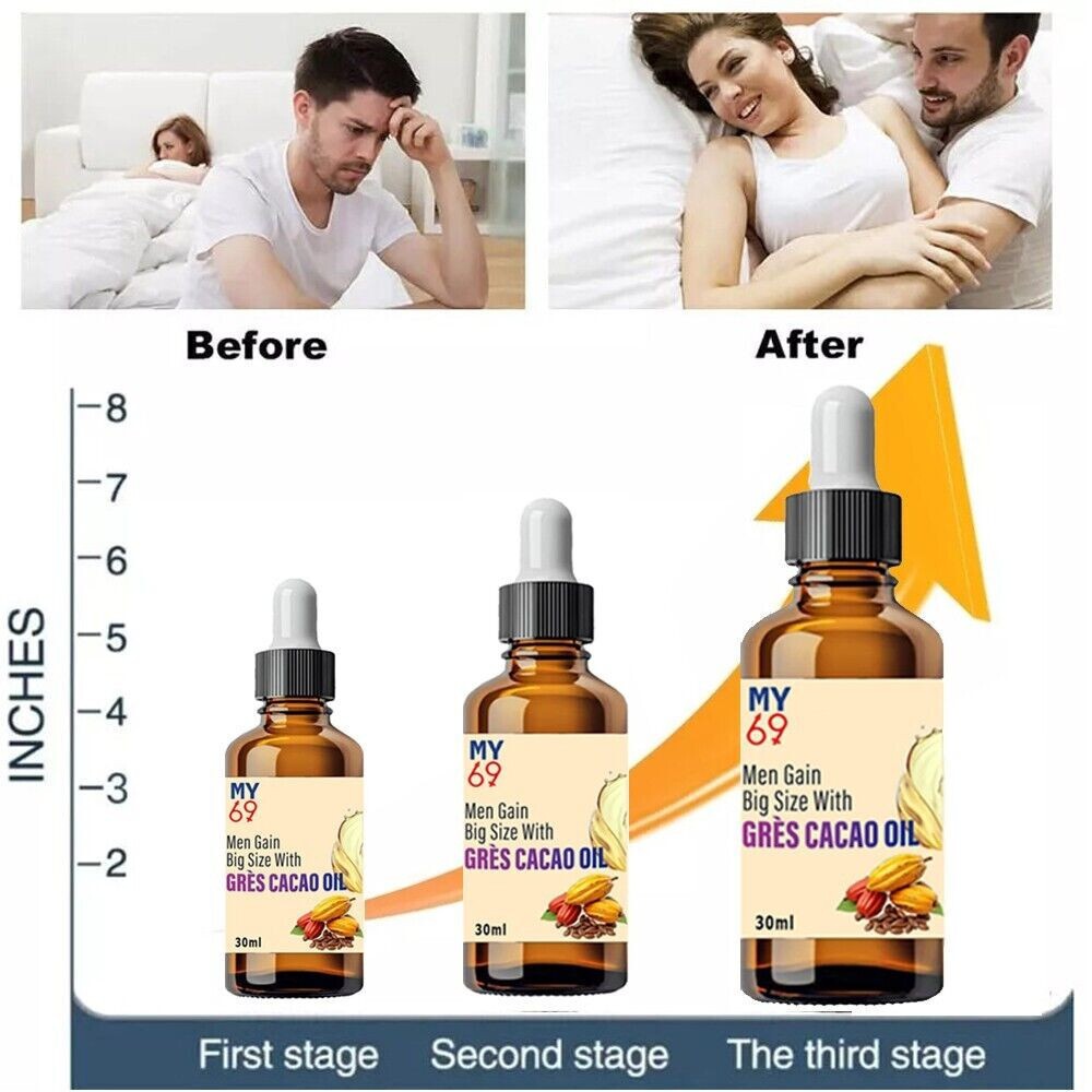 Gres Cacao Enhacement Massage Oil for Men - 1 fl oz ( Organic Formula Blend ) Ingredients: - Organic Formula Blend (Cacao Extract, Essential Oils, Herbal Extracts) How to Use: Apply a few drops of the oil to the desired area. Gently massage in circular motions until fully absorbed. Use daily or as needed for best results. Note: Results may vary from person to person. Consistent use is recommended for optimal benefits.
