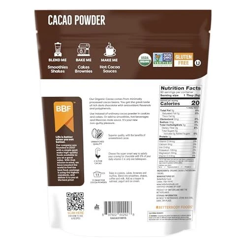 Organic Cacao Powder, Rich Chocolate Flavor, Non-GMO, Gluten-Free, Cocoa, 16 ounce, 1 lb bag Less fat & fewer calories: Chocolate is a staple in most households, but it can make people feel guilty because it is often associated with candy and sugary treats. Our Organic Cacao Powder provides you with a better-for-you alternative to regular chocolate. Our chocolate has the same great flavor as ordinary cocoa with the added benefits of organic cacao and less guilt Best tasting cacao powder: Who doesn’t love indulging in a chocolate treat every once in a while. Our Organic Cacao Powder may seem like an unlikely contender when compared to the powdered cocoa you’re used to, but think again. It can be used as a substitute for ordinary chocolate powder in nearly any dish. It is the smart way to get your chocolate fix Organic Chocolate: Our Organic Cacao Powder can give you a boost of nutrients in each serving. This cacao powder is a great addition to any post-workout routine and can be used alongside the protein powder that you already use. This product comes in a 16 oz. bag and is USDA organic, non-GMO, and kosher certified. Oh, and it's also gluten-free Simple Ingredients: We made Organic Cacao Powder with one simple ingredient—organic cacao from Peru. No more confusing labels or hard-to-pronounce ingredients. With our cacao powder, you're getting the real deal and nothing else! Blend, Bake, or Shake: Kick cocoa to the curb and try cooking and baking with our Organic Cacao Powder. Mix into baked goods like bread, pancakes, waffles, cakes, and cookies to add a great chocolatey flavor. You can also blend it into breakfast smoothies and other tasty drinks. Great for men and women who are chocolate lovers. The possibilities are endless Finding better alternatives to common foods can be helpful for people who are trying to change their diet and live a better life. Instead of using ordinary cocoa powder, switch over to Organic Cacao Powder! With no additives, you’ll get the same great flavor as cocoa but without the guilt! Chocolate has never tasted so good! Cacao is a great addition to breakfast smoothies and shakes because it is a superfood that is loaded with helpful nutrients, vitamins, and antioxidants. Our organic cacao powder is not only great in shakes and smoothies, but it can be used in a variety of baked goods. Use it in bread, cookies, muffins, cupcakes, pancakes, and waffles for a flavorful kick that your entire family will love! You can also use it to make hot chocolate beverages and classic Mexican mole sauce. The possibilities are endless! Unlike many other foods that have ingredients that you can’t even pronounce, our cacao contains 1 simple ingredient: organic, cacao. With chocolate this pure, you'll never go back to ordinary cocoa. This cacao powder is the perfect new addition to your pantry. is determined to bring you quality foods that are better for your body without sacrificing the flavors that you enjoy. Don't just take our word for it; try some for yourself today! Shipping We offer FREE shipping on all orders! We ship within Three business days of payment, usually sooner. We use a selection of shipping services such as UPS, FedEx, USPS etc. We only ship to the lower 48 states, no APO/FPO addresses or PO Boxes allowed. Local pickups and combined shipping options are not provided at this time. Return You can return a product for up to 30 days from the date you purchased it. Any product you return must be in the same condition you received it and in the original packaging. Please keep the receipt. Payment We accept payment by any of the following methods: PayPal Please pay as soon as possible after winning an auction, as that will allow us to post your item to you sooner! Feedback Customer satisfaction is very important to us. If you have any problem with your order, please contact us and we will do our best to make you satisfied. Contact Us If you have any queries, please contact us via ebay. We usually respond within 24 hours on weekdays. Please visit our eBay store to check out other items for sale! Thank you for shopping at our store.