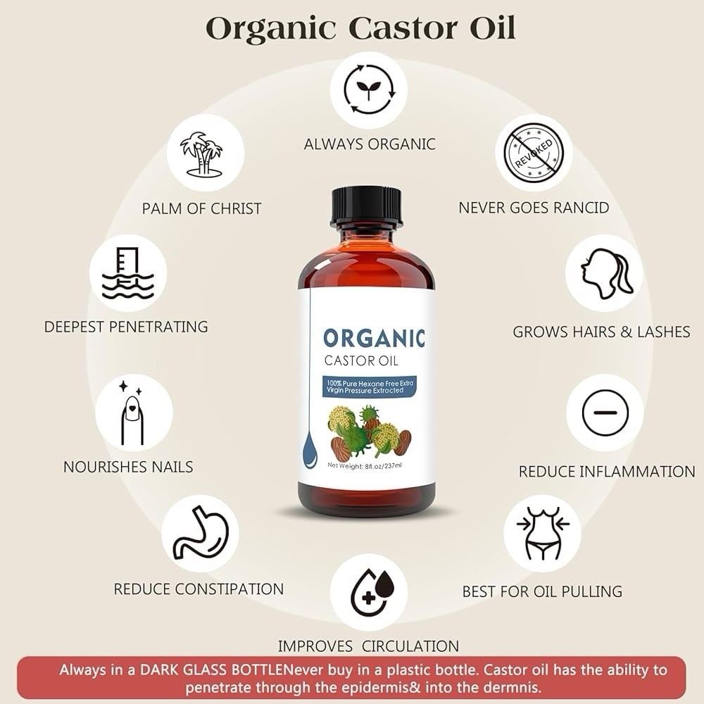 Brand SWturK Item Volume 37 Milliliters Special Feature Pure Number of Items 1 Scent Unscented Item Form Oil 【Benefits of Castor Oil】These include increased circulation, Hair growth promotion,improved lymphatic system function, relief from IBS and other digestive issues, reduced swelling and inflammation. To achieve optimal results, it is highly recommended to choose organic castor oil for Castor Oil Packs. 【Organic Castor Oil Cold-Pressed Glass Bottle】 Our 100% pure Organic Castor Oil (8 fl. oz/237 ml) is extra virgin cold-pressed, unrefined, and hexane-free and always packaged in an amber glass bottle. Notes: Never use castor oil that is non-organic or bottled in plastic to avoid hormone disrupting chemicals. 【How to Use】It can be used with the castor oil pack wrap for liver, lymphatic drainage, and colon cleansing purposes. Simply apply 1-2 tbsp of organic castor oil to the center of the castor oil pack wrap, wrap it around your body, and adjust the elastic straps to a comfortable length. Wear it for 1 hour daily or, ideally, overnight. IMPORTANT: Avoid using castor oil packs during pregnancy. Please consult your doctor to determine if it is suitable for you. 【What's Included】You will receive a 4-in-1 castor oil pack kit, which includes the following items: Organic Castor Oil in a Cold Pressed Unrefined Glass Bottle (8 fl. oz/237 ml) × 1, Castor Oil Pack Wrap made of Organic Cotton × 2, and Organic Flannel Cloth for Castor Oil × 1. Additionally, our dedicated customer service team is available to assist you. 【Reusable Organic Fabric】Your Castor Oil Pack is composed of an inner layer of soft organic cotton flannel, an outer layer of polypropylene that is heat-bonded (a cleaner alternative to chemical bonding) to a middle layer of organic cotton flannel. The organic flannel cloth for castor oil is made from unbleached organic cotton flannel, which is hypoallergenic and will not cause allergic reactions.