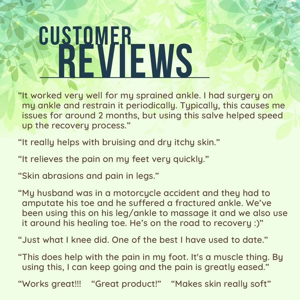 Organic Comfrey & Arnica Salve - Natural Relief for Muscle Pain & Skin Healing ‹ › ‹ › ‹ › ‹ › ‹ › ‹ › ‹ › ‹ › ‹ › ‹ › ‹ › Organic Comfrey & Arnica Salve Your Natural Relief for Muscle Pain & Skin Healing BACK IN STOCK IN MID-OCTOBER. Product Highlights: Crafted from organic certified ingredients, ensuring the utmost purity and quality. A potent blend of comfrey and arnica, renowned for their healing and pain-relieving properties. Gluten-free, cruelty-free, and chemical-free for peace of mind. Formulated in-house, in small batches to guarantee exceptional quality. Suitable for all skin types, making it a versatile addition to your skincare regime. Our Commitment: Utilizing the finest, responsibly sourced ingredients. Combining traditional herbal knowledge with modern technology. All packaging is environmentally friendly; reusable and recyclable. We prioritize your needs, listening carefully to ensure our products fulfill them. Crafted with Care: It all started with an insatiable curiosity for nature and its gifts, leading to an exploration of herbs and their potent applications. In 2011, the journey began with simple experiments, culminating in the creation of in 2014, dedicated to producing high-quality herbal oils, salves, and teas. Why Choose Our Organic Comfrey & Arnica Salve? Whether you are battling muscle pain, sprains, or minor skin irritations, this salve is your trusted ally on the path to relief. The combined powers of comfrey and arnica work harmoniously to soothe discomfort, promote healing, and rejuvenate your skin. Embrace a naturally effective solution that reflects a commitment to quality and care. Transform your self-care routine—experience the difference with our Organic Comfrey & Arnica Salve. Order now and take the first step toward holistic healing! Shipping Free & Fast Shipping - We offer free shipping to most of the USA with a normal delivery time of 3-7 days. However, due to the current situation, additional delivery time (up to 3 weeks) may be required for some items. Alternative Carriers - We may use alternative carriers (e.g. USPS, FedEx, UPS, etc.) to ensure your package arrives safely and on time. Due to the use of multiple carriers, we are unable to provide a tracking number automatically. Handling Time - Orders are processed and shipped within 1-2 business days of receiving cleared payment. Shipping Restrictions - Shipping to Alaska, Hawaii, Puerto Rico, Guam, and other US territories may incur shipping charges or delivery restrictions. Please contact us before ordering, or your order can be refunded/cancelled. State Restrictions - There may be restrictions based on your state of purchase. For example, certain items may not be shipped to California due to state regulations. Contact for Tracking Updates - If you require tracking updates or have any concerns about the delivery of your order, please feel free to contact us, and we will be happy to assist you. Return Please see our eBay Return Policy. Thank you. Payment We accept all major credit cards, PayPal, and Apple Pay for your convenience. Your payment information is secure and encrypted to ensure a safe and seamless transaction. Please complete your payment within 3 days of purchase to avoid any delays in shipping. Feedback Your feedback is extremely important to us. We strive to provide the best products and customer service possible. If you are satisfied with your purchase, please take a moment to leave us a positive review. If you have any concerns or issues with your order, please contact us before leaving negative feedback. We are committed to resolving any problems and ensuring your satisfaction. Contact Us If you have any questions or concerns, please feel free to reach out to our customer support team. You can contact us through the eBay messaging system. We are available Monday to Friday, 9:00 am to 5:00 pm EST, and we will do our best to respond to your inquiry within 24 hours. Thank you for supporting our small family business! UPC: Not Set Expiration Date: Not Set Unit Quantity: 1 Formulation: Salve Active Ingredients: Comfrey,Arnica Features: Organic,Gluten-Free,Cruelty-Free,Chemical-Free Scent: Not Set Main Purpose: Aches & Pains,Bruising,Muscle Therapy,Joint Pain,Minor Burns,Cuts,Scrapes,Wounds Administration: Topical When to Take: Not Set Ingredients: Arnica,Comfrey,Herbal Oils Type of Diet: Organic Body Area: Skin Department: Unisex Brand: Unbranded Type: Salve Dosage: Not Set MPN: Not Set Country/Region of Manufacture: Not Set Item Weight: 6.4 oz Volume: Not Set Number of Pills: Not Set Unit Type: oz