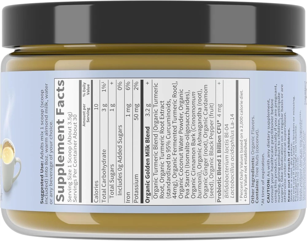 This golden milk powder is a game-changer! The blend of organic turmeric and ashwagandha makes it so soothing—perfect for winding down after a long day. It mixes easily, tastes delicious with warm milk, and I love that it’s vegan and non-GMO. After just a few servings, I noticed better relaxation and recovery. Definitely a must-try for anyone looking for a natural wellness boost!