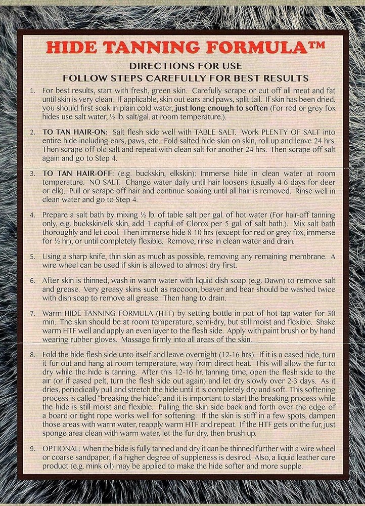 Organic Hide Tanning Solution - 2 Pack 8oz Bottles for Fast Results ‹ › ‹ › ‹ › ‹ › ‹ › ‹ › Organic Hide Tanning Solution - 2 Pack 8oz Bottles for Fast Results Product Highlights: 2 x 8 oz. Bottles - Perfect for your tanning needs. Legendary Quality: Trusted by thousands of hunters and trappers across the USA and Canada for decades. Made in the USA: Proudly produced and bottled for over 20 . Easy to Use: Each bottle comes with a complete set of instructions for hassle-free tanning. Benefits: Fast tanning results: Tan hides at home in less than a week! Cost-effective: Enjoy tanning without the traditional costs. Versatile: Ideal for tanning deer hides (hair-on for rugs or mounts and hair-off for buckskin) as well as all fur skins including muskrat, mink, beaver, fox, coyote, raccoon, squirrel, bear, elk, moose, and cowhide. Produces a soft, supple Indian-style tan in just 5-7 days. Packs the power: One 8 oz. bottle can tan one deer hide or two medium-sized fur skins. Extra bottles required for larger hides: Bear, elk, moose, and caribou require 3-6 bottles for optimal results. Why Choose Our Hide Tanning Solution? Transform your hunting trophies into keepsakes with our Organic Hide Tanning Solution, renowned as the finest tanning formula in the world. With decades of trust from thousands of hunters and trappers, you can confidently embark on your tanning journey knowing that quality is assured. You will be amazed at how simple and effective this solution is, turning your hides into beautiful, supple leather. Don't let your hard work go to waste; click "Add to Cart" now and get ready to tan like a pro! Shipping Free & Fast Shipping - We offer free shipping to most of the USA with a normal delivery time of 3-7 days. However, due to the current situation, additional delivery time (up to 3 weeks) may be required for some items. Alternative Carriers - We may use alternative carriers (e.g. USPS, FedEx, UPS, etc.) to ensure your package arrives safely and on time. Due to the use of multiple carriers, we are unable to provide a tracking number automatically. Handling Time - Orders are processed and shipped within 1-2 business days of receiving cleared payment. Shipping Restrictions - Shipping to Alaska, Hawaii, Puerto Rico, Guam, and other US territories may incur shipping charges or delivery restrictions. Please contact us before ordering, or your order can be refunded/cancelled. State Restrictions - There may be restrictions based on your state of purchase. For example, certain items may not be shipped to California due to state regulations. Contact for Tracking Updates - If you require tracking updates or have any concerns about the delivery of your order, please feel free to contact us, and we will be happy to assist you. Return 30-Day Hassle-Free Returns - We want you to be completely satisfied with your purchase. If you are not, you can return the item within 30 days of receiving it for a full refund or exchange. Easy Return Process - To start a return, simply contact us and we will provide you with a prepaid return shipping label and detailed instructions. Restocking Fee - There are no restocking fees for returns. However, the buyer is responsible for return shipping costs if the return is not due to a seller's error. Refund Processing Time - Refunds will be processed within 5 business days of receiving the returned item in its condition. Payment We accept all major credit cards, PayPal, and Apple Pay for your convenience. Your payment information is secure and encrypted to ensure a safe and seamless transaction. Please complete your payment within 3 days of purchase to avoid any delays in shipping. Feedback Your feedback is extremely important to us. We strive to provide the best products and customer service possible. If you are satisfied with your purchase, please take a moment to leave us a positive review. If you have any concerns or issues with your order, please contact us before leaving negative feedback. We are committed to resolving any problems and ensuring your satisfaction. Contact Us If you have any questions or concerns, please feel free to out to our customer support team. You can contact us through the eBay messaging system. We are available Monday to Friday, 9:00 am to 5:00 pm EST, and we will do our best to respond to your inquiry within 24 hours. Buy it now and enjoy a pleasant shopping experience! Expiration Date: Hide Tanning Formula Unit Quantity: 2 Formulation: Liquid Features: Organic,Easy to Use,Made in the USA,Legendary Quality Body Area: Full Body Type: For Indoor Use Color: Multicolor Sun Protection Factor (SPF): SPF 0 Volume: 8 fl oz Skin Type: All