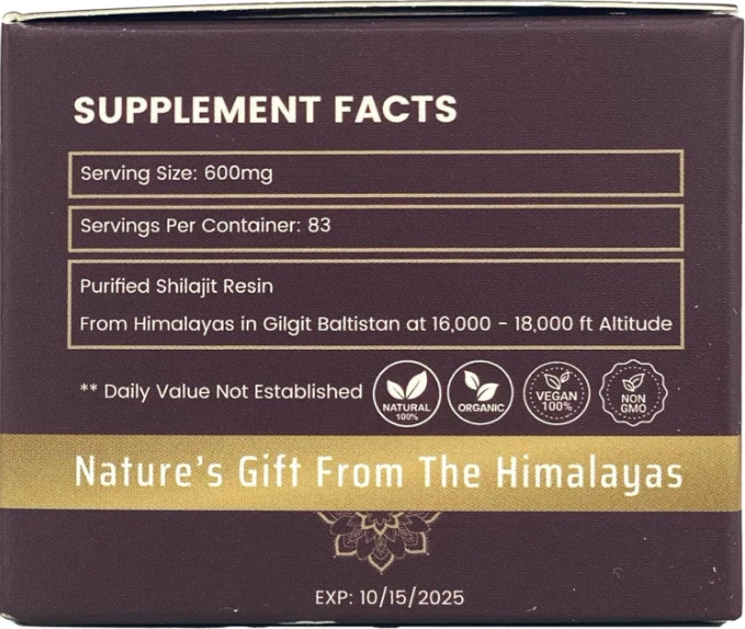 Organic 100% Pure Himalayan Shilajit, Soft Resin, Extremely Potent, Fulvic Acid US Warehouse - FREE & FAST Shipping in US Product Description: These statements have not been evaluated by the FDA. This product is not intended to diagnose, treat, cure, or prevent any disease or health condition. Flavor: Natural Shilajit flavor Boost energy, Stamina, and Vitality Naturally with this ancient supplement. Rich in Minerals for overall wellness. Immune Support Convenient resin form that can be easily dissolved in water or consumed directly. Feedback: 1.Any question for your order, please contact us in time, we will reply to you within 24 hours and give you a satisfactory answer. 2.If you are satisfied with our products and services, hope to take up your a little precious time to leave feedback reviews for our products.Thanks! 3.Your satisfaction is our effort. Welcome to order again! Have a great day! Our Policy: 100% Satisfaction Guarantee 20% of restocking fee will be charged for return item