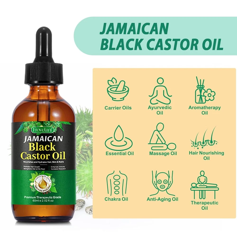 Jamaican Black Castor Oil, Organic Castor Oil for Hair Growth, Cold Press Unrefined, Thicker Eyelashes and Eyebrows, Massage Oil for Aromatherapy 60ML/2 fl oz (PACK OF 1) ORGANIC CASTOR OIL - Our Organic Cold Pressed Castor Oil Made Of Pure, Natural, and Organic Ingredients, riches in omegas and fatty acids that condition roots and nourish hair follicles for healthier, stronger and fuller looking hair, lashes and brows, it's the key vitamins and nutrients to hair growth. STIMULATE HAIR GROWTH: Our jamaican black castor oil hydrating for hair & skin. It's an all-natural way to thicken & strengthen hair to reduce hair loss & hair growth, Organic castor oil is a natural essential oil for dry brittle hair, dry scalps, and dandruff. HYDRATE & SOOTHE DRY SCALP: Our Organic castor oil rich blend of over multiple essential oils, Massage Organic Castor Oil onto dry areas of the skin and scalp to restore moisture and softness, combat dandruff while working to strengthen, lengthen, nourish, and protect hair. FOR BEST RESULTS: Warm a quarter sized amount of our Organic Castor Oil into the palms of your hands and spread evenly all over scalp. Comb through from roots to ends. Leave in overnight or at least 1 hour, then wash out with shampoo to reveal deeply-hydrated, luscious-looking hair. WIDELY APPLICATION: This all natural formula jamaican black castor oil is good for eyebrow, nails, hair, skin and massage, hydrates more than just your hair and scalp, Also for skin makes a nourishing, skin-softening moisturizer for face and body, suitable for all skin type, perfect for massage therapy as well as. Note: This Product is designed to deliver optimal results, offering high-quality performance and satisfaction. Please note that individual experiences and outcomes may vary based on personal use, preferences, and unique circumstances. For best results, we recommend following the provided guidelines and ensuring the product is used as intended. Product result may vary for every individual.