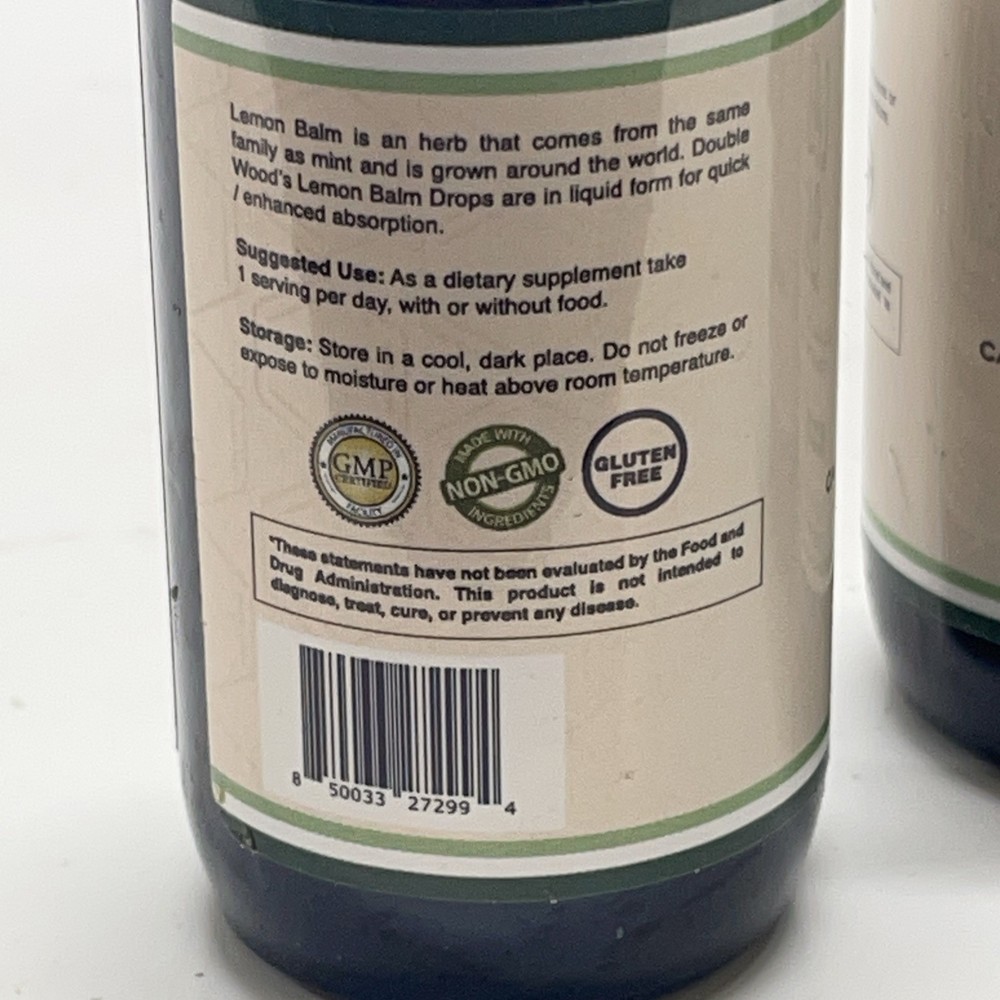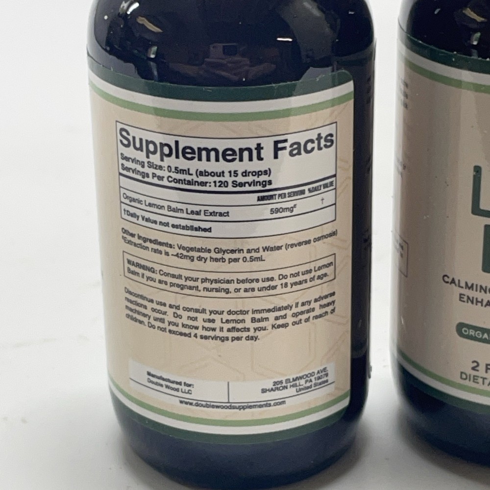 Organic Lemon Balm Tincture Drops by Double Wood Supplements - Expires 2026 - Three Pack