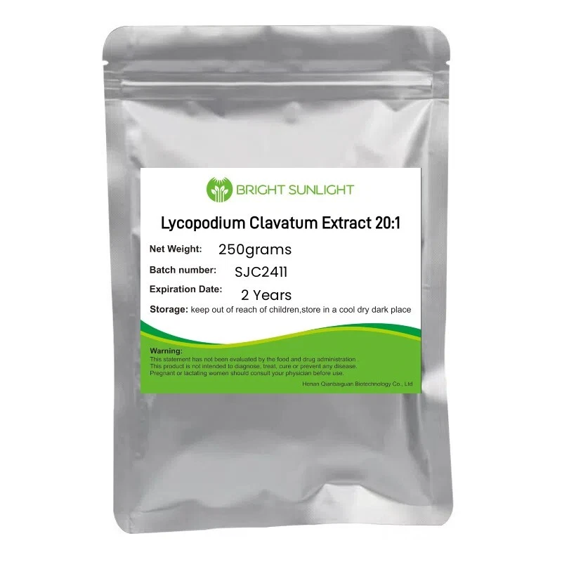 Product Name: Organic Lycopodium Clavatum Extract 20:1 Powder Shen Jin Cao Product Appearance:Brown powder Product Packaging:Aluminum foil bag Storage :The product is sealed and stored in a dry, cool and well ventilated place The Period Of Validity:2 years Net Weight :250g These products are not intended to diagnose, treat, cure or prevent any disease. All information presented here is not meant as a substitute for or alternative to information from healthcare practitioners. Please consult your health care professional about potential interactions or other possible complications before using any product. Storage: Stored in a dry place and no direct sunshine.