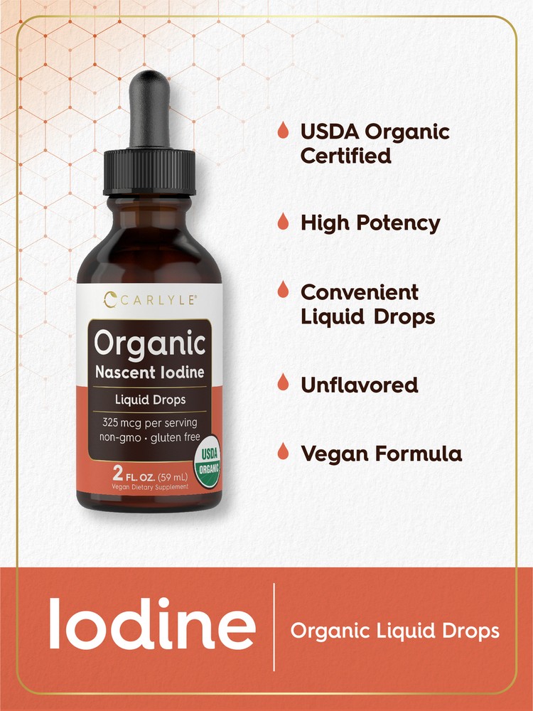 What is Nacent Iodine? Iodine is one of many essential trace minerals that the body cannot produce on its own. Nascent Iodine is a type of supplemental Iodine, the most highly regarded and optimally absorbed form. Carlyle Nascent Iodine: Carlyle Nascent Iodine is a premium form of this essential trace mineral. Our supplement provides 325 mcg of Iodine just two liquid drops, which is 217% of your daily value! It’s naturally Non-GMO, Gluten-Free, Organic, and an easy to add water or your favorite juice, complementing any daily routine. Rooted in Wellness: Our expertise in sourcing the purest ingredients combined with advanced technologies makes us proud to deliver premium, honest supplements at the best value. Carlyle Nascent Iodine is a testament to our commitment to excellence, made with powerful ingredients rooted in wellness. Thanks for choosing us in your pursuit of living healthy.
