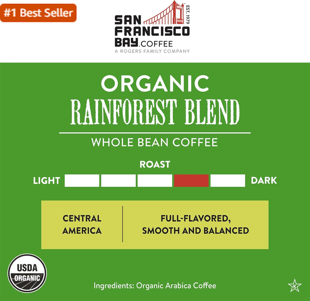 San Francisco Bay Coffee - Medium-Dark Roast Whole Bean Coffee - Organic Rainforest Blend (2 Lb Bag) - UDSA Organic Organic Rainforest Blend is a medium dark roast from beans grown in Central America. This is a smooth and balanced coffee that is full of flavor. Perfection. FOR FINEST TASTE: Store in a cool, dark place and grind beans just berfore brewing QUALITY COFFEE: San Francisco Bay Coffee uses only 100% arabica coffee and certified Kosher coffee beans. Hand picked and grown in high altitude. We're so confident you'll love it, we back it with a satisfaction guarantee. SUSTAINABLY AND ECO- FARMED COFFEE: We offer a wide selection of sustainably grown, sourced, and packaged coffee from whole bean to ground, flavored to decaf, and much more. SF BAY COFFEE is a family owned, American made company with a rich tradition. Our reputation reflects on us as a family so if you're ever not happy with your purchase, call us and we'll make it right. Are you looking for delicious coffee available in a wide selection at a great value? Then SF Bay Coffee is for you! We've developed a line of unique custom blends, exotic regional coffees, and single estate coffees available in single serve pods, whole bean, ground and unroasted green coffee. All of our ally and socially responsible coffees are offered at the best possible prices. We stand for eco-, sustainable, direct trade coffee at prices you'll love. We like to say our products are grown for good. Roast Level Medium Roast Product Dimensions 3.75 x 5.5 x 9 inches; 2 Pounds Caffeine Content Description Caffeinated Flavor Name Organic Rainforest Blend Units 2.0 Ounce Flavor Organic Rainforest Blend Brand SAN FRANCISCO BAY Size 2 Pound (Pack of 1) Shipping Fast shipping is very important for us. Our standard US shipping service is FREE. Your order will be shipped within 2-3 business days upon full payment received. Your order will be delivered within 2-3 business days after the handling time. We only ship to the confirmed PayPal address. We reserve the right to cancel any order for any reason at any time. We are not responsible for undeliverable addresses. Returns and payment We offer a 30 days return policy from checkout winning date. We allow only PayPal as payment method FeedBack Your feedback very important to us, after you get your package and you are satisfied with our service please leave us positive feedback If you have any problem with your order / any questions please before leave any type of feedback For any questions, using eBay contact system Please visit our eBay store to check out other items for sale! Thank you for shopping at our store.