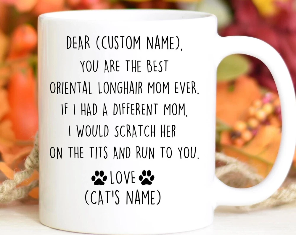 Oriental Longhair Mom Birthday Gift Oriental Longhair Mom Christmas Gift British Angora Mom Valentine Oriental Longhair Mom Appreciation Product Details.. This high quality 11oz. ceramic white mug has a premium hard coat that provides crisp and vibrant color reproduction sure to last for years. Perfect for all hot & cold beverages. The highest quality printing possible is used. It will never fade no matter how many times you wash it. Material: 100% Ceramic. Print both sides. Dishwasher and Microwave Safe. High Gloss + Premium White Finish. Printed in the U.S.A. Personalized & Custom. We support personalized and custom mug to add custom, when placing an order, you can add notes to the "order note" in shipping address section. Also you can contact us directly via message. Shipping Info. Ready to ship in 1 to 2 business days, All products are made-to-order and proudly printed in the United States. Shipped by USPS and DHL, You will receive your order in 5-7 days. Replace & Refund. All products are defective during shipping broken, chipped will be replaced free of charge. You are not satisfied with the product, we will refund 100% money to you. If any other issues arise, please do not hesitate to message, we would be more than happy to assist you.
