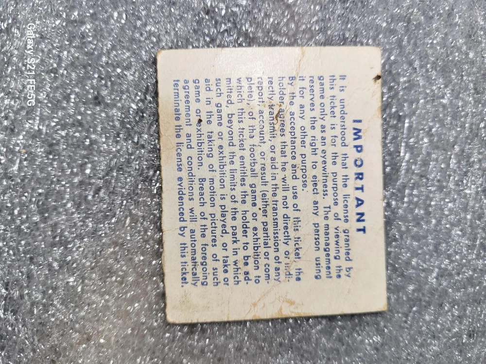 Original 1963 Chicago Bears Game Ticket Stub Bears Vs 49ers Original 1963 Chicago Bears Game Ticket Stub Bears Vs 49ers This is an original ticket with some wear and tear as you can see. Look at the photos to judge the condition for yourself. I'm not an expert on every item I sell so if I forgot to mention something just ask and I'll try to answer your question. You can enlarge the pictures to get a better look. I will always combine shipping (if possible) on multiple auctions won to save you money. Shipping price if quoted is to the lower 48 states only. All others ask for a quote. Payment is expected within 3 days. Thanks for looking and have a great day. If an item was offered with free shipping, the original outbound shipping costs will be deducted from your refund. Listing and template services provided by inkFrog