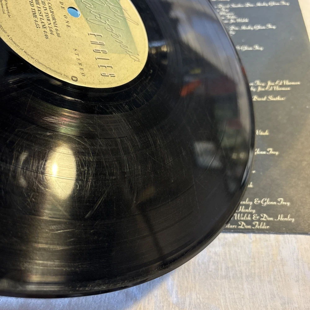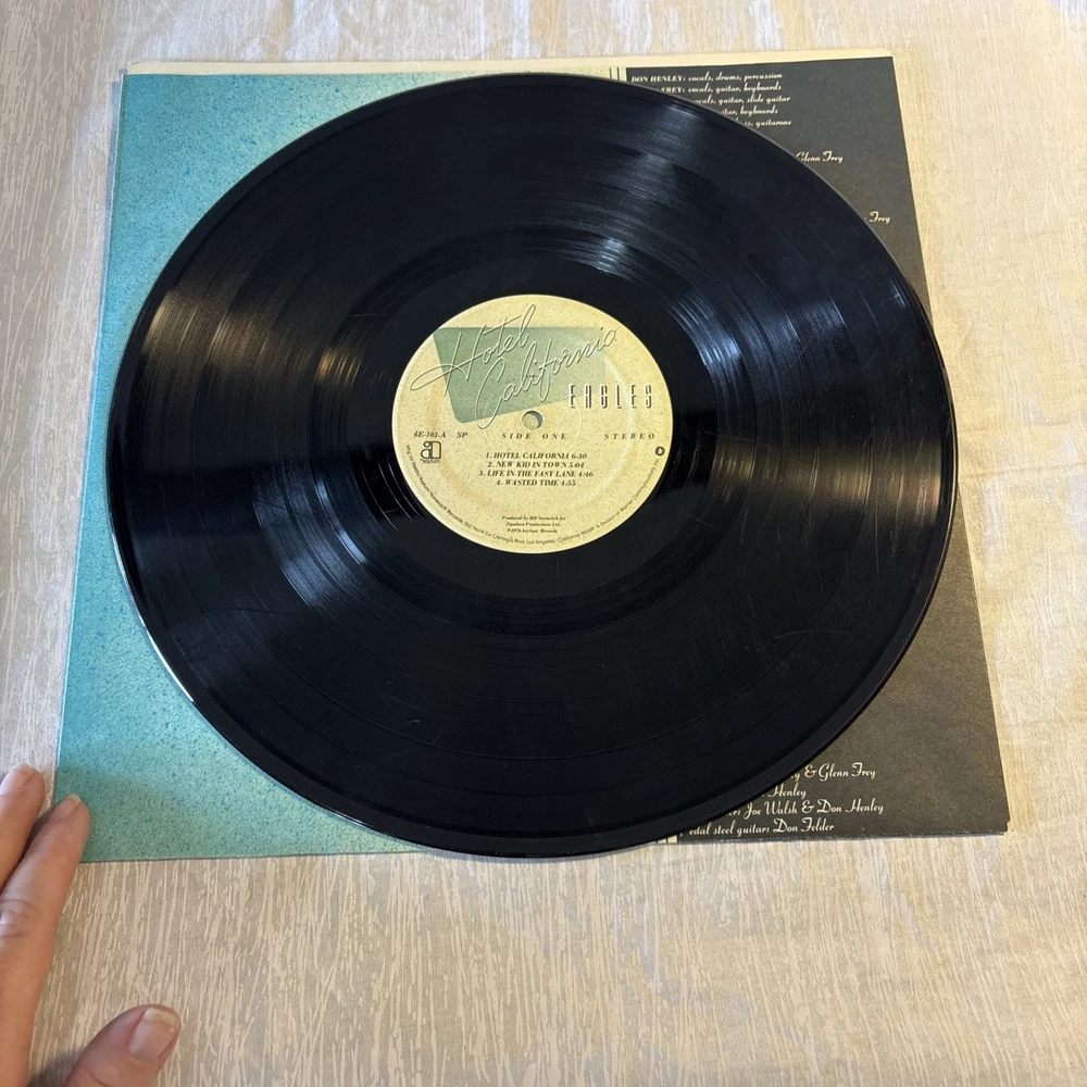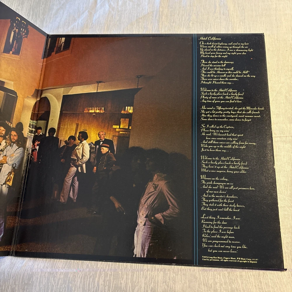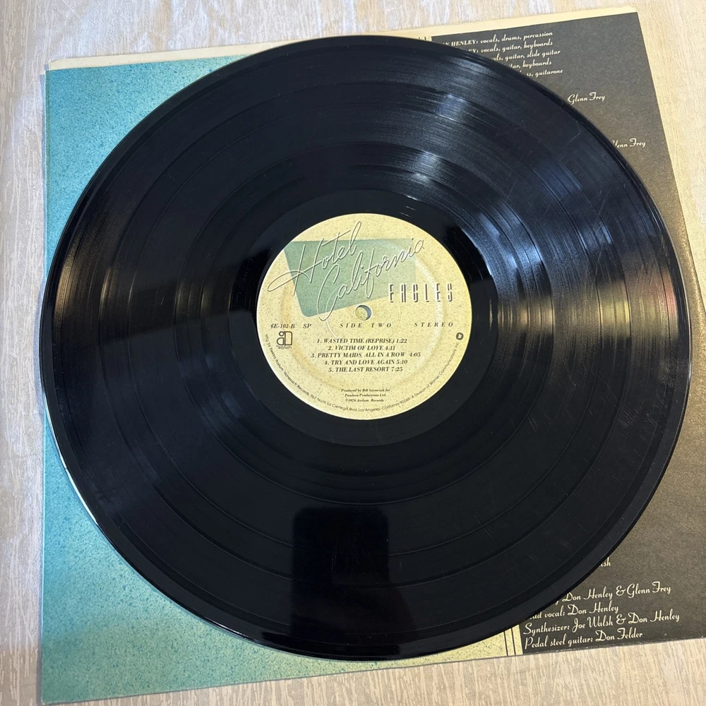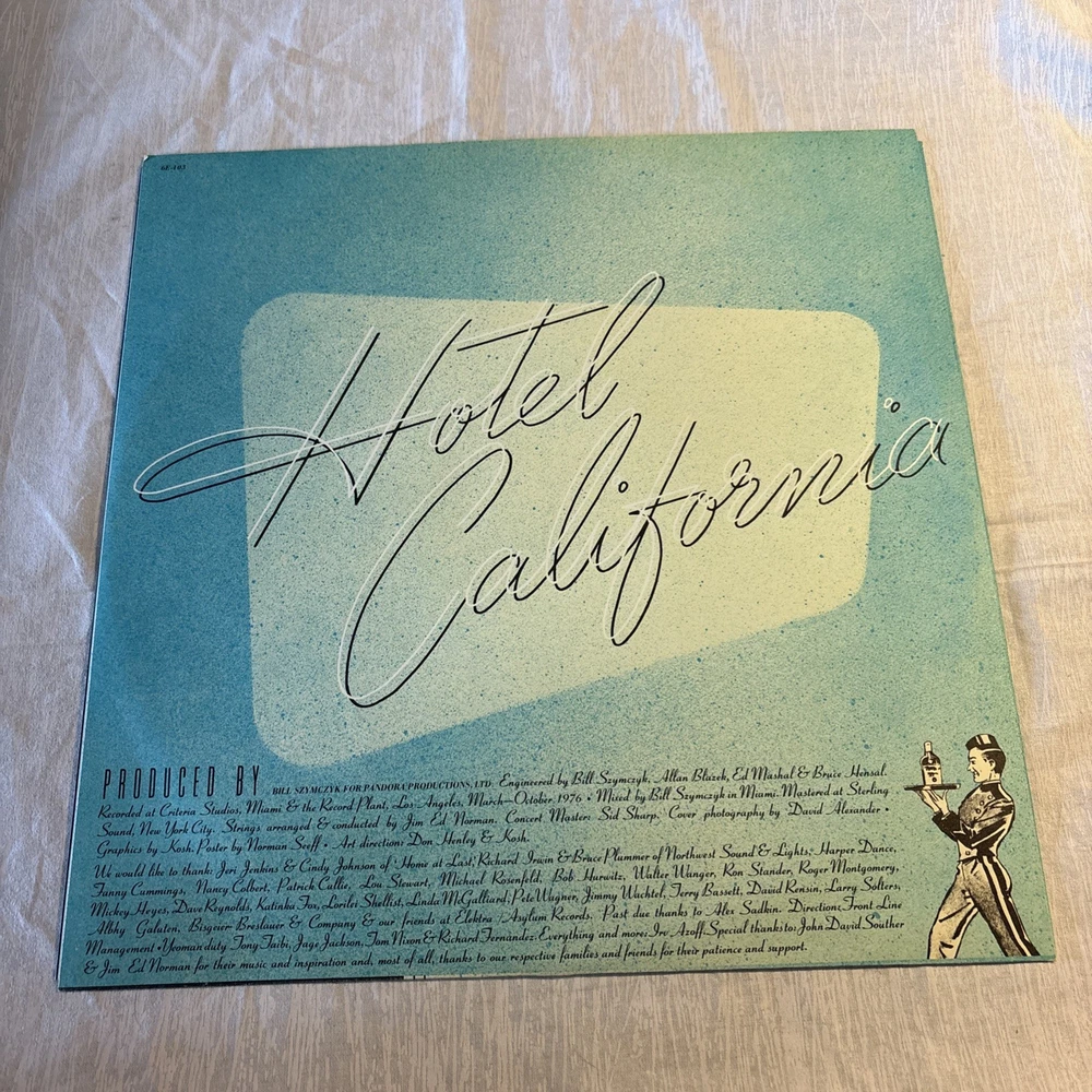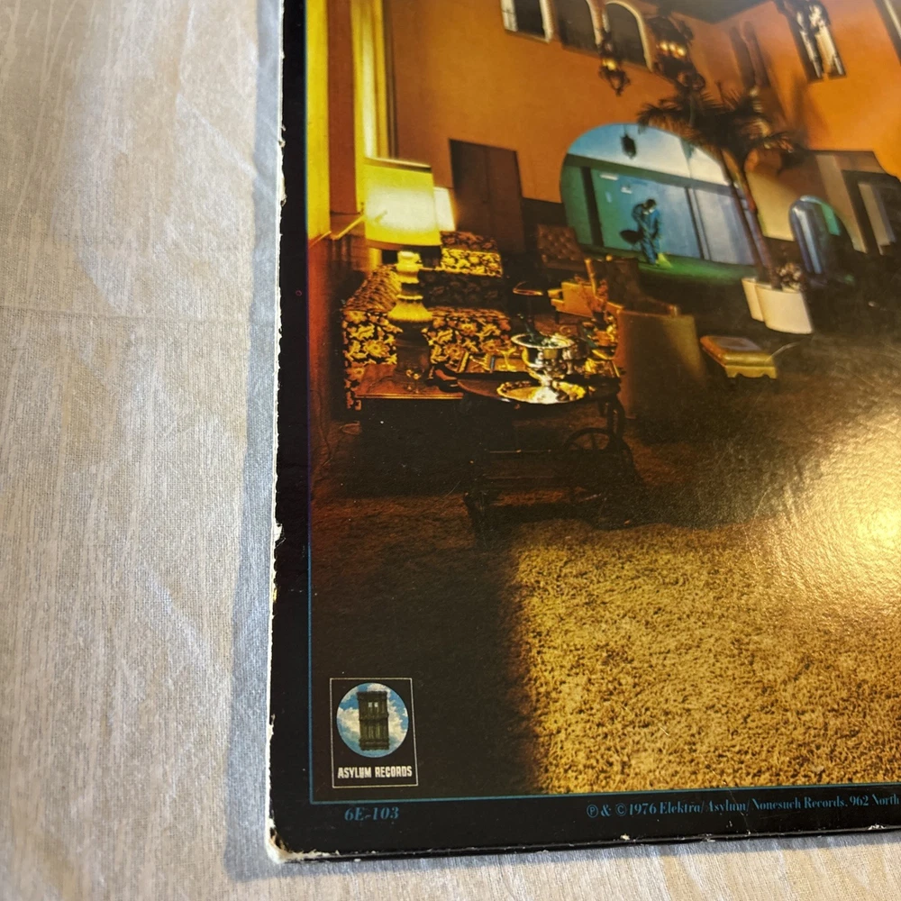 Original 1976 The Eagles "Hotel California" LP - Asylum Records (6E-103) VG+. Slight wear/tears on edges of cover. Inner sleeve is excellent condition. Record has slight scratches from normal use. See pictures for more details