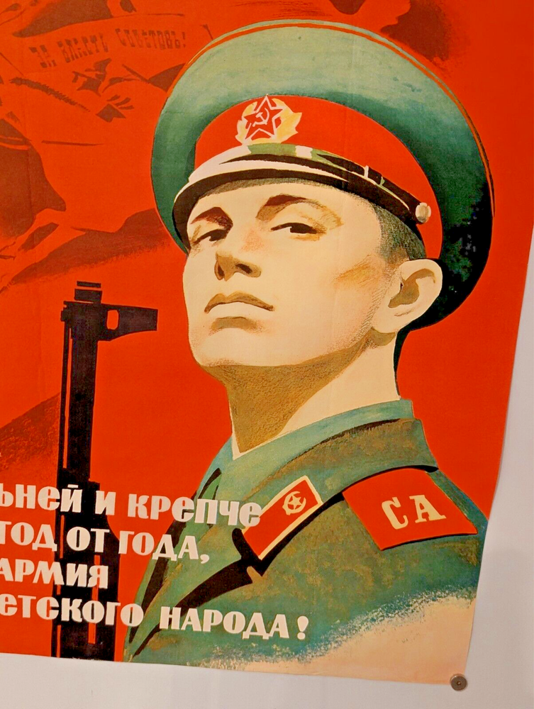 Welcome to Antique Poster Shop The poster is one of the most lively and, at the same time, the most complex areas in graphic design, in art. The Soviet poster is a truly unique phenomenon, and in different years the authors of famous posters were outstanding Soviet artists, leading people of their time. The best artists of their time worked on propaganda posters, famous poets wrote slogans - thus, unique graphic schools were formed. Nowhere in the world did they teach the poster purposefully and systematically, as it was in the USSR. Rare Soviet posters today have to be searched for in different countries of the world. It's a paradox, but what was created in only a few copies and is known only to collectors is sometimes easier to find than what was produced in thousands of copies. Of the millions of campaign posters that have adorned the streets, classrooms, classrooms and hospital corridors for many decades, only a few have survived. Posters of the Soviet era are not only original works of graphic art, antiques and antique graphics, original retro gifts and interior items, but also truly historical documents. SIZE – 60/43 CENTIMETERS OR 25/ 16 INCHES . 1988 SLOGAN : Y ear after year you become stronger and stronger Soviet army ITS IN VERRY GOOD AND SAVED CONDITION. IF YOU HAVE ANY QUESTIONS OR NEED MORE INFOR MATION, WRITE ME. PERFECT FOR COLLECTION, PRESENT, DECORATION, USE. THE PAINTER IS Feklyaev Vladimir Nikolaevich 1947 Soviet graphic artist, illustrator, poster artist. Member of the Union of Artists of the USSR. Vladimir Nikolaevich Feklyaev was born in Melitopol. Studied at the Moscow Art and Industrial School named after M. I. Kalinin (1964–1968), at the Moscow Polygraphic Institute (1968–1971), at the Moscow State Art Institute named after V. I. Surikov (1972–1978), with N. A. Ponomarev, O. M. Savostyuk, I. T. Ovasapova. Since 1978 he has worked in the field of political and social posters. Collaborated with the publishing houses "Plakat", "Young Guard" and others. Participated in republican, all-Union exhibitions and poster competitions. Author of posters: "Serving the people" (1970), "Give Siberia!" (1978), "Peace to planet earth!" (1979), "Happy New Year 1981!" (1980), “I am the son of the country of the Soviets!” (1980), “Soviet-Mongolian friendship is indestructible!”, “For exemplary social order!”, “Happy birthday, pioneers, red-tie people!”, “More excellent goods to the people!”, “Scientist for the glory of the fatherland, create!”, "Glory to the reliable guardians of the world!" (all -1981), “Party plans are my plans!” (1981, 1983), “Samotlor, Urengoy, Neryungri, BAM, Surgut, Ulkan, Tomsk Petrochemical Plant”, “Let’s be diligent and economical - the wealth of the motherland will become huge!”, “I took the line - do not stand still - this is the law of working honor !”, “Glory to the Soviet armed forces!”, “Let our Motherland become stronger and more beautiful!”, “For our Motherland, for peace on the planet, for everything we are with you, comrade, in the answer!” (all -1982), “Happy New Year 1983!”, “To work and live for the people is no higher than this dream. I was accepted into the family of grain growers, stand next to us and you!”, “For the first time in the world”, “Glory to Soviet pilots!” (all -1983), "April 12 - Cosmonautics Day" (1984), "The borders of the Motherland are inviolable" (1984), "February 23 - Day of the Soviet army and navy" (1985), "Glory to the Soviet missilemen!", "We will carry out your decisions, congress!" Designed and illustrated books for publishing houses: Children's Literature, Bustard, Terra, Military Publishing, and others, paints pictures, works as an easel graphic artist. In the 1980s, he completed sketches for printed materials for the World Festivals of Youth and Students in Moscow and Pyongyang; design - for the pioneer camp "Orlyonok" in Tuapse, the propaganda train "Komsomolskaya Pravda" and the propaganda boat "Korchaginets". He made business trips to the Russian House of Science and Culture in Berlin (1989-1992), (1993-1995), (1996-1997), where he performed advertising posters. The posters of V. N. Feklyaev are kept in the State Historical Museum (GIM), the State Central Museum of Modern History of Russia, the Russian State Library (Moscow), the State Museum of the History of Cosmonautics named after K. E. Tsiolkovsky, the Central Museum of the Ministry of Internal Affairs, the State Museum of the History of St. Petersburg (GMI St. Petersburg), Astrakhan State United Historical and Architectural Museum-Reserve, Berezniki Museum of History and Art. I. F. Konovalova (BIHM), Volsk Museum of Local Lore, Voronezh Regional Museum of Local Lore, City Museum of Local Lore (Miass), Local Lore Museum of Syzran, KGIAMZ im. E. D. Felitsyna, Morshansky Museum of History and Art, Central Museum of Taurida (WTC), Khabarovsk Regional Museum named after N. I. Grodekov, Museum of German History (Berlin), Poster Museum in Osnabrück, Gottbus poster gallery and other private collections Russia, Germany, Greece, Italy, Cyprus, Poland. Attention important information ////// A ttention important information //////////////////////////////////////////////////////////////////////////////////////////////////////////////////////////////////////////// Visit my store : https://www.ebay.com/str/originalfilm312/Poster/_i.html?store_cat=43231993011 In my store, all posters are very conveniently arranged by category. I combining shipping ( After selecting all posters. Write to me to send you an invoice including combined shipping . ) Will be shipped rolled in professional packaging and tracked delivery Some posters are undergoing professional restoration. But not all. If this is important for you, ask a question, this poster has been restored or not. Thank you /////////////////////////////////////////////////////////////////////////////////////////////////////////////////////////////