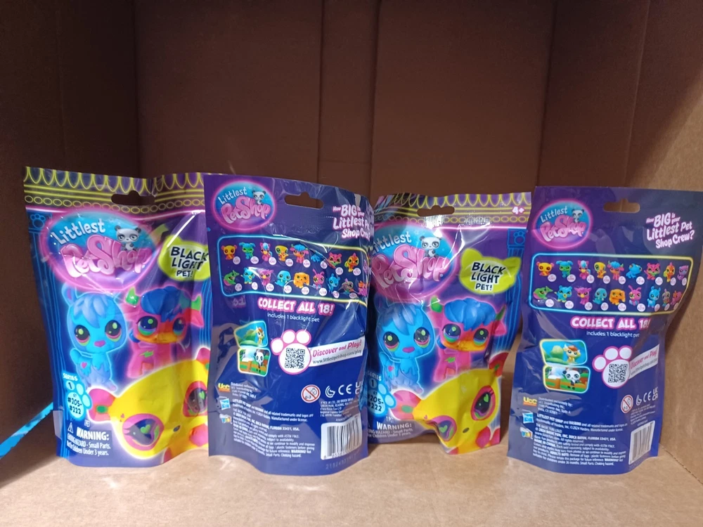 THIS LISTING IS LOT OF 4 BLIND BAGS " BLACK LIGHT PET" FEATURING THE KID FAVORITE CHARACTERS "LITTLEST PETSHOP" BRAND NEW ALL BAGS ARE SELAED 18 STYLES TO COLLECT GOOD GIFTS FOR KID OR PERSONAL COLLECT FREE SHIPPING FOR LOCAL U.S