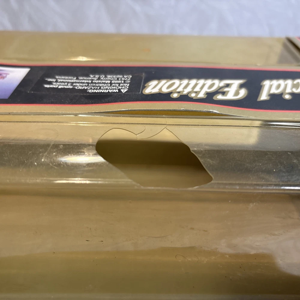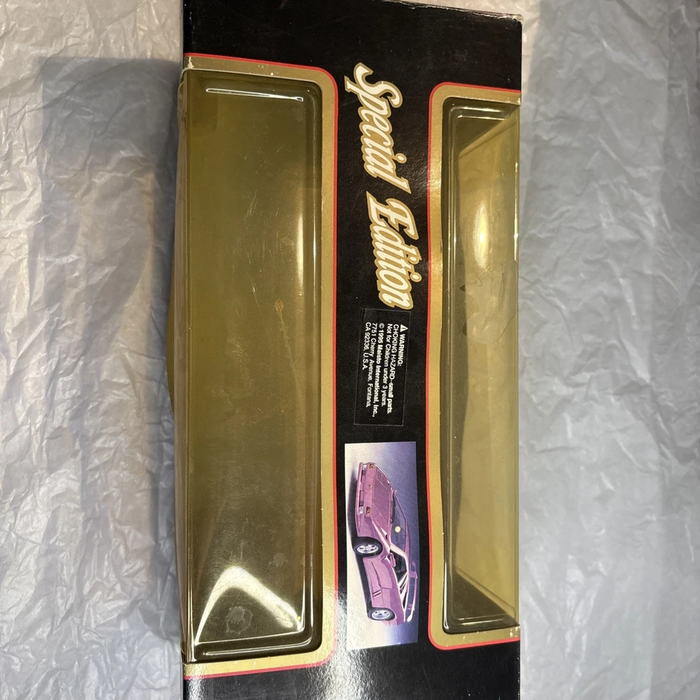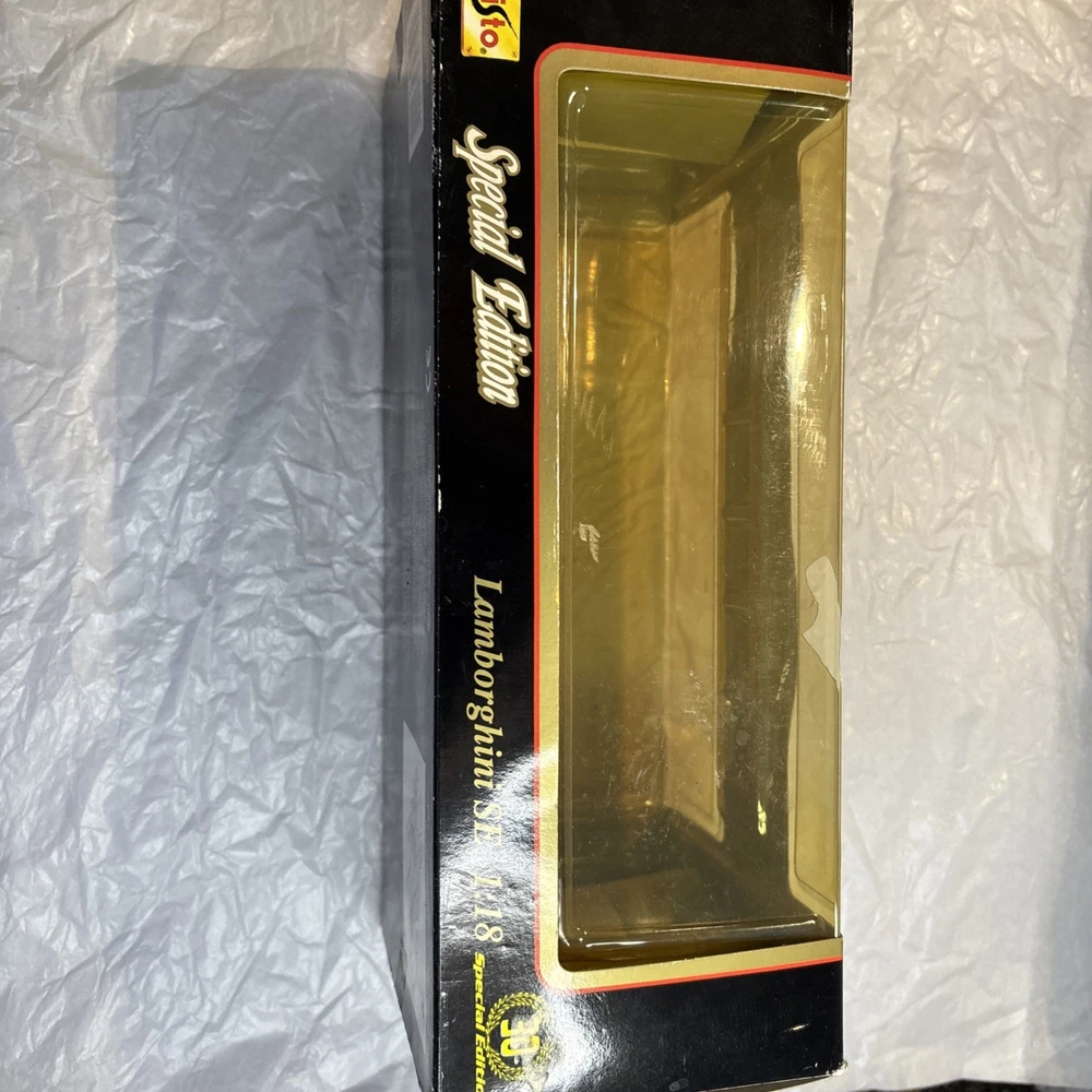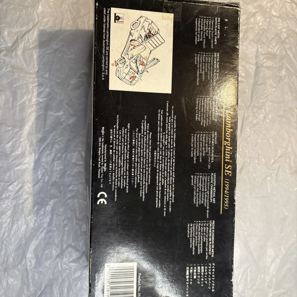 The Original Maisto Special Edition Diecast Model Car of the Lamborghini Diablo from 1994-1995 is a highly detailed collectible toy vehicle. This 1:18 scale model features a purple color scheme, specific to the Lamborghini Diablo SE model. Made from diecast material, this special edition version of the Lamborghini Diablo is a must-have for car enthusiasts and collectors alike. The intricate design and accurate representation of the vehicle make it a valuable addition to any diecast car collection. This was made to commemorate Lamborghini's 30th anniversary. Comes with original box (worn with one small hole in plastic) and mounted on display panel. Box is worn but car is in excellent condition. All moving parts are intact. Only taken out of box for photos for listing. Size is approximately one foot long on mount.