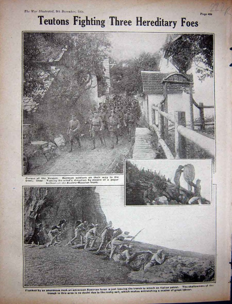 Old Original Antique Victorian Print WW1 1916 Voseges German Soldiers Teutons Thiepval Army A Page And Reverse With Photographs Or Sketches Taken From The War Illustrated. A Ww1 Pictorial Record Of The Conflict Of The Nations Edited By J A Hammerton Editor Of Harmsworth History Of The World. Dated As 1916 Or As In Title. image Size Is 11 X 9 Inches (280X230). All Are Genuine And Not Modern Copies. All prints are original antique prints and are not copies. Many are unique and rare. All products are delivered securely in a re-inforced hard back envelope or a postal tube.