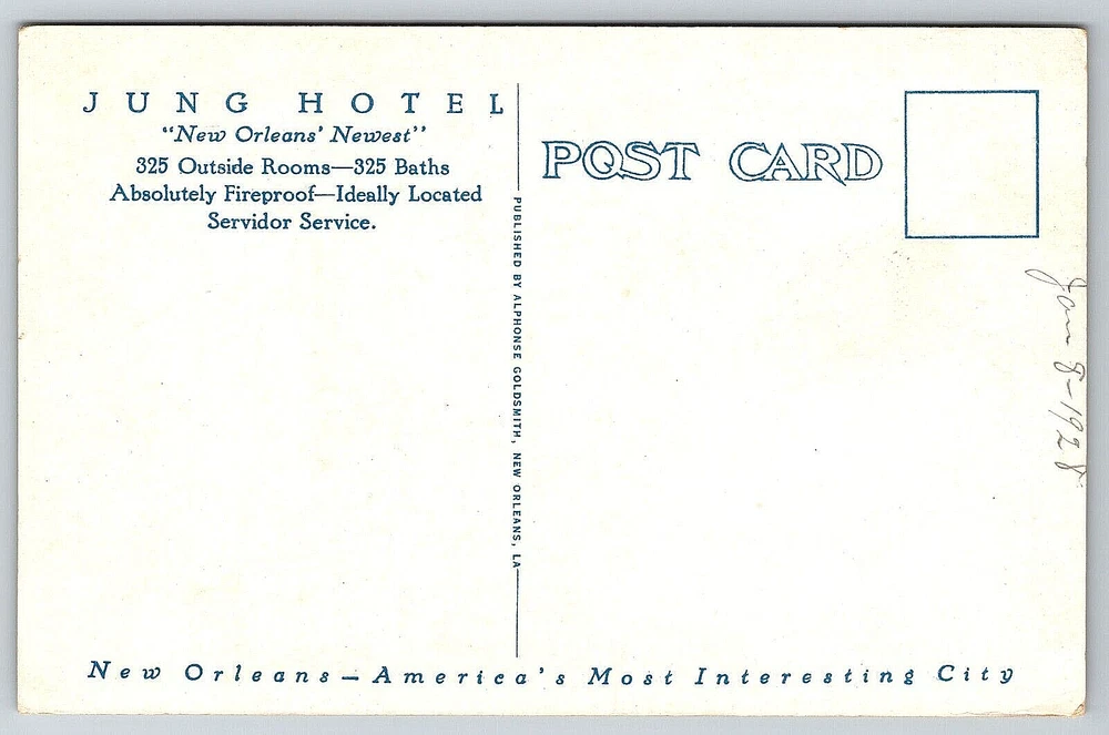 Original Old Vintage Antique Postcard Jung Hotel Cars New Orleans Louisiana USA