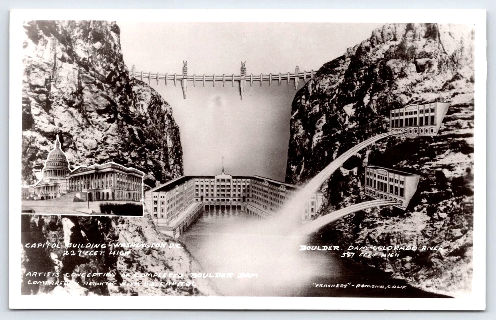 Signed By: None Theme: Architecture, Community Life, Domestic & Family Life, Famous Places, Historical Figures, Landscapes, Roadside America, Seasons, Social History, Tourism Seller Notes: “Good Vintage Condition.” City: Boulder Dam Postage Condition: Unposted Type: Mail Old Genuine Original Postcard Card Image Picture Antique Occasion: Postcard Artist: Postcard Unit of Sale: Single Unit Brand/Publisher: FRASHER'S, INC. POMONA, CALIFORNIA Number of Items in Set: 1 Continent: North America Signed: No Time Period Manufactured: NA Featured Person: None Color: Black And White Posted: No Features: Divided Back, Original Genuine Antique Vintage Postcard Character: Postcard Country/Region of Manufacture: United States Size: Standard (5.5 x 3.5 in) Subject: Dam Stamp: No Antique: Yes gtin13: DOES NOT APPLY Original/Licensed Reprint: Original Finish: Glossy Era: Divided Back (1907-1915) Country: United States Material: Paper Vintage: Yes Orientation: Horizontal UPC: DOES NOT APPLY Region: Colorado Franchise: Postcard