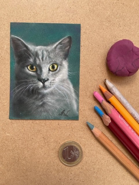 Original Pastell Zeichnung ACEO 2,5 inches x 3,5 inches (6,4 x 8,9cm) Miniatur Painting Herzlich willkommen auf meinem neuen Ebay Account Das Bild wurde von mir gezeichnet mit feinen Kunst Pastellfarben, PanPastellen und Pastellstiften auf hochwertigem Pastellpapier (Pastelmat). Jahr 2025 Um das empfindliche Pastellbild vor äußeren Einflüssen zu schützen empfehle ich es zusätzlich in einem Bilderrahmen aufzuhängen! Die Zeichnung ist ein signiertes handgefertigtes Unikat. Herzlichen Dank für Ihr Interesse! Um mehr über meine Werke zu erfahren, können Sie meine Homepage zu besuchen. Gerne können Sie mich kontaktieren und eine Zeichnung oder Gemälde in Auftrag geben. Bei Bestellung mehrerer Bilder wird der jeweils höchste Versandkosten Betrag nur einmalig für die gesamte Bestell. Versand mit Sendungsverfolgung.